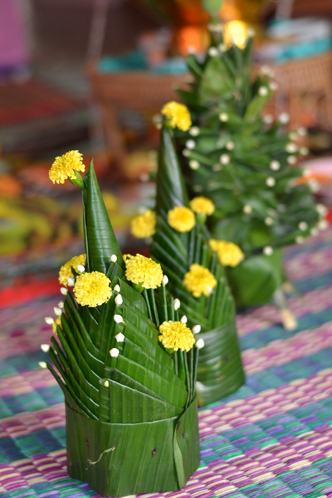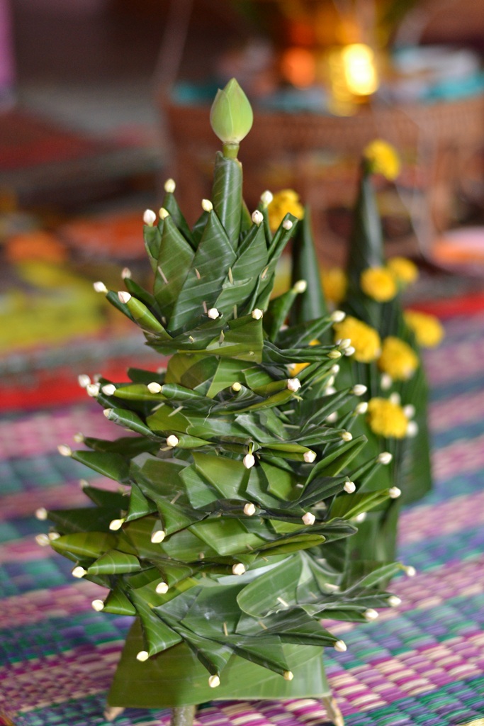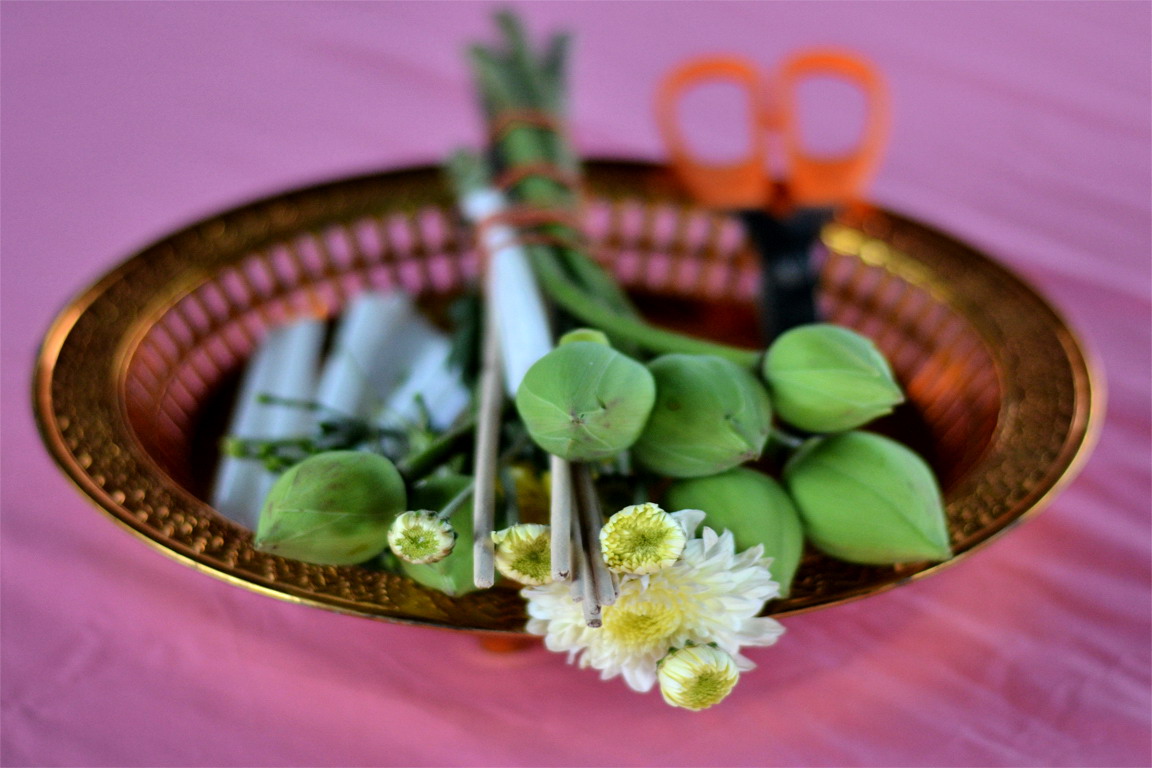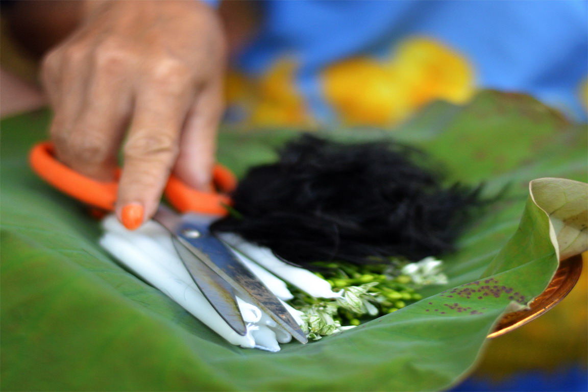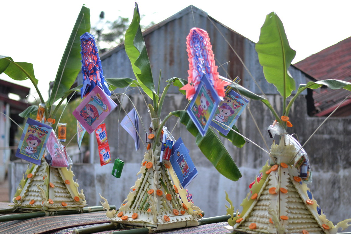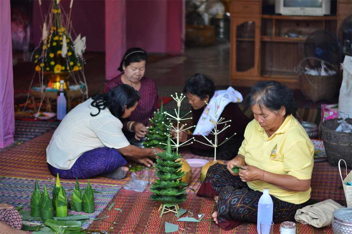 ช่วยกันทำของที่ใช้ในพิธีบวช