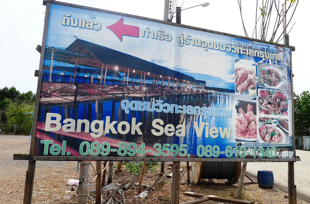 มาติดตามการเดินทางไปทานปูกันต่อค่ะ.... กริ้งๆ ป้าแอ๋วถึงไหนแล้วครับ......เลี้ยวซ้ายเข้ามาถนนชายทะเลบางขุนเทียนแล้วค่า...ขับตรงมาเรื่อยๆนะครับ จนสุดถนนจะเห็นปูตัวใหญ่ๆ เลี้ยวขวา ก็เจอร้านบางกอกซีฟู้ดแล้วครับ....