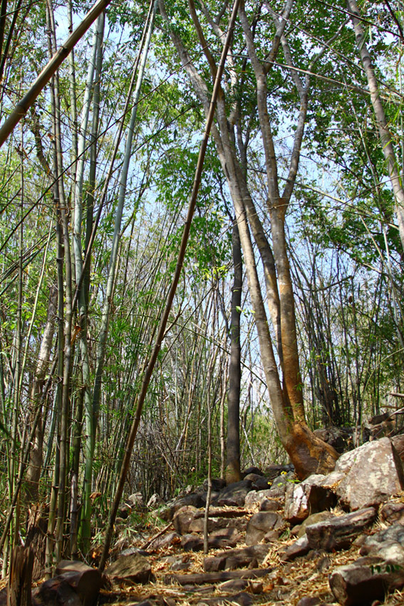 ต้นไม้ใหญ่ๆก็มีมาก ผสมกับป่าไผ่ แต่ร้อนมาก