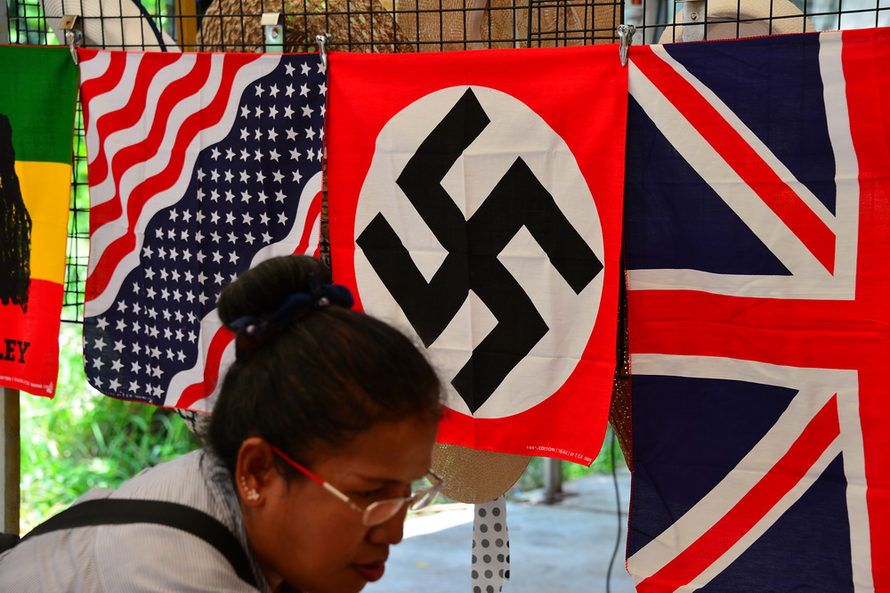 มีของกิน/ของใช้ ให้เลือกซื้อหาตามใจชอบอะครับ สะดุดตาธงสีนี้อะครับ
