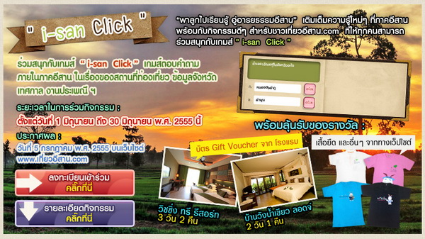 ททท.มีรางวัลมาแจก ร่วมกิจกรรม i-san Click ลุ้นรับรางวัล ฟรี!