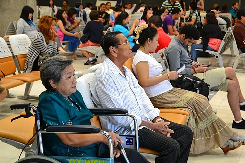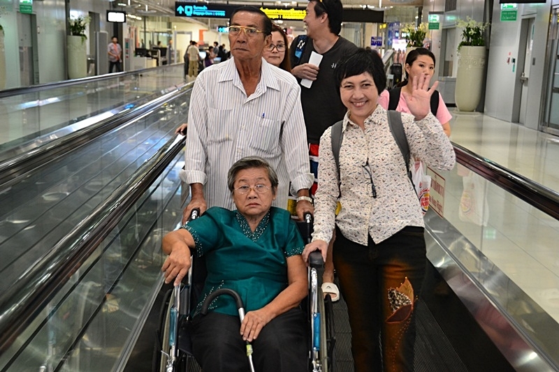 ถึง Gate แล้ว ขนาดนั่งวีลแชร์ที่สายการบินจัดให้ คุณแม่ยังดูเหมือนจะเหนื่อย