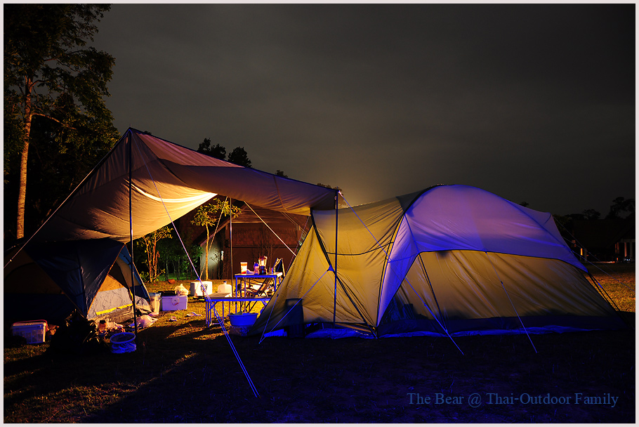 ออกจากกรุงเทพฯ ตอนบ่าย ไปกันสบายๆ กว่าจะถึงเขาใหญ่ก็เย็นพอดี เลยต้องรีบกางเต็นท์ และทำอาหารกัน กว่าจะเสร็จภาระกิจ ได้มานั่งสบายๆ ก็ค่ำเสียแล้ว