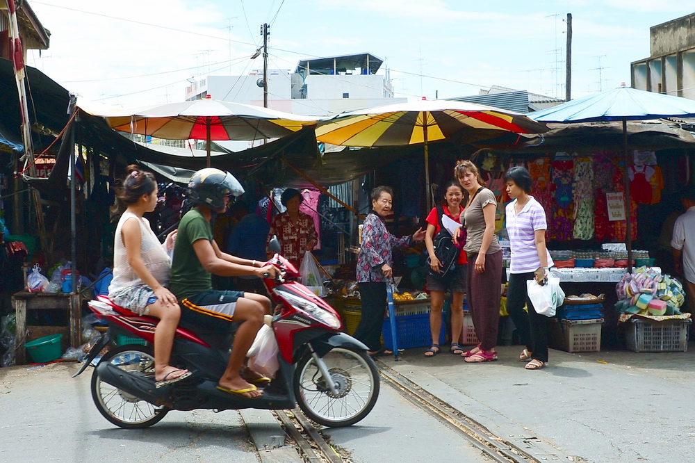 พร้อมกันแล้วไปลุยกันครับ ขบวนรถไฟจะมา 11:30 น. เราบังมีเวลาเหลือเยอะที่จะเดินชมตลาดกันก่อนครับ วันนี้แดดทั้งแรงและร้อนอบอ้าวมากๆครับ