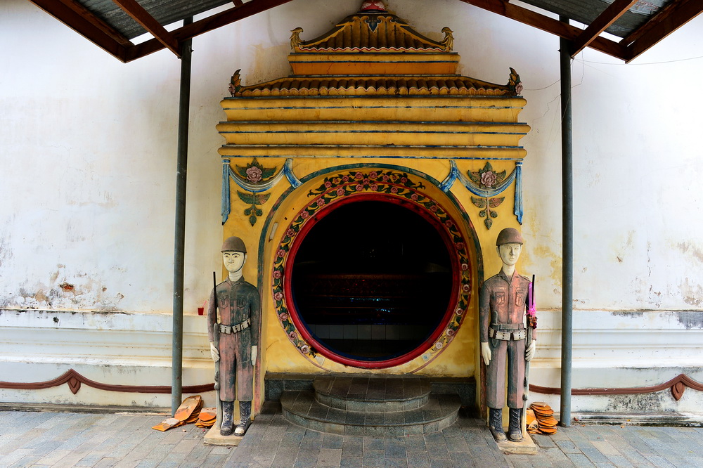เดินทางจาก กทม. โดยใช้เส้นทางพระราม 2 ระหว่างทาง ผบทบ อยากแวะไปยังวัดบางกะพ้อม สมุทรสงคราม ไหว้หลวงพ่อคงกันก่อน ครับ อุโบสถ์หลังนี้ได้อิทธิพลมาจากจีน ลักษณะประตูทางเข้าเป็นวงกลม