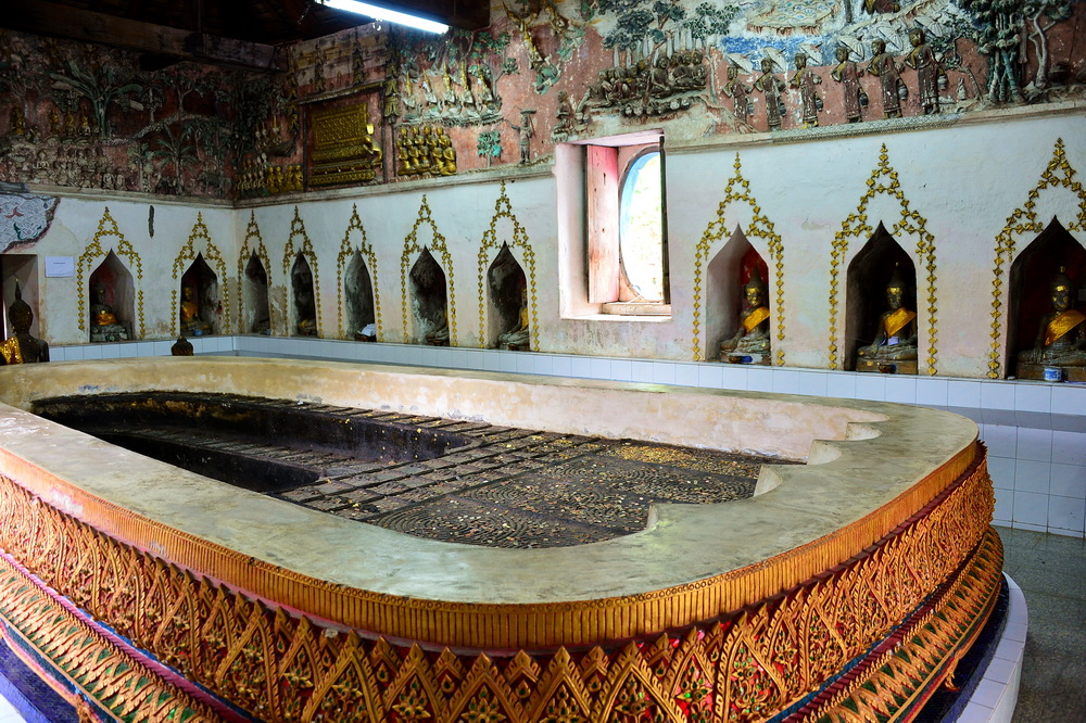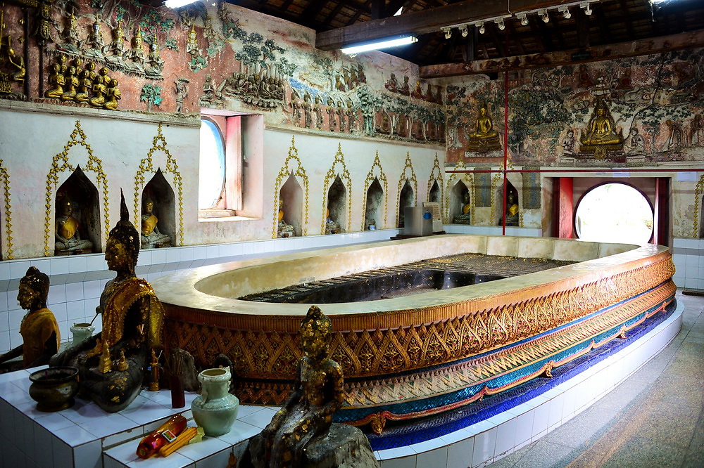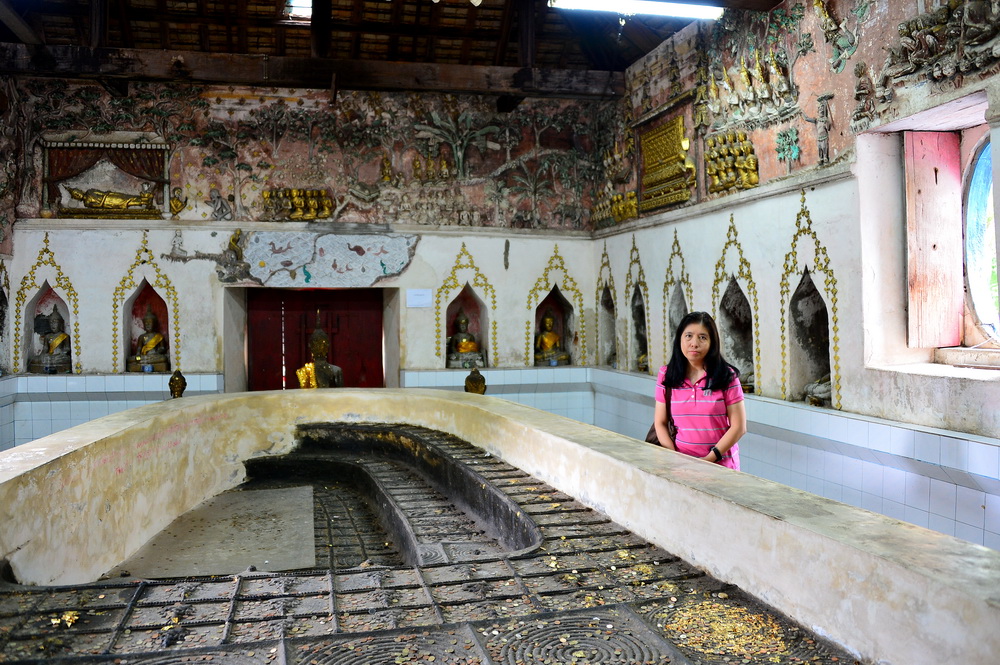 ด้านในพระอุโบสถ์เป็นที่ประดิษฐาน รอยพระพุทธบาท