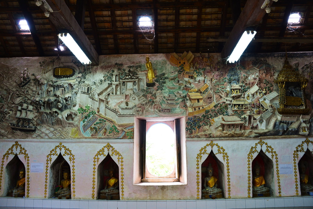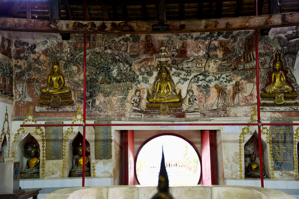 ศิลปะในพระอุโบสถ์นี้เป็นปูนปั้น และตอนนี้กำลังอยู่ในช่วงการบรูณะอยู่