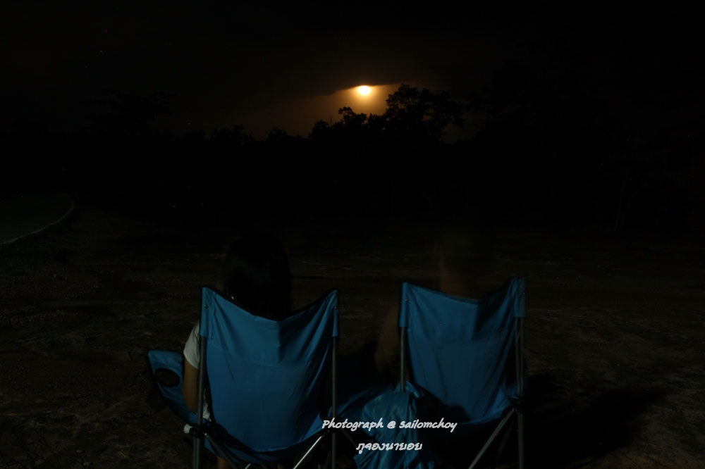 สุดท้ายฝนฟ้าก็คำราม คืนนี้พระจันทร์เต็มดวงที่ภูจองนายอย อ.บุณฑริก จ.อุบลราชธานี แต่เป็นพระจันทร์เต็มดวงแบบผลุบ ๆ โผล่ ๆ เพราะฝนก็มาเป็นระลอกเหมือนกัน ชีวิตชาวเต็นท์ของพวกเราก็แบบนี้ละครับ สนุกสนานกันไปตามแบบของเรา