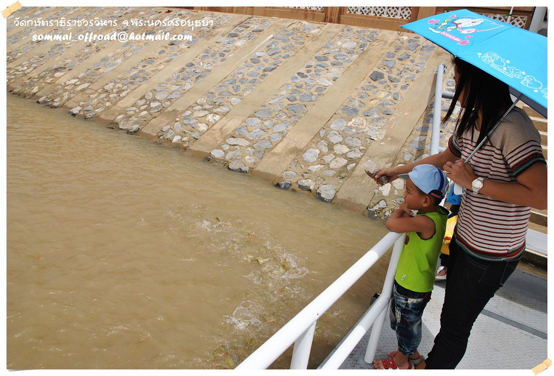 พวกเราก็พาเจ้าตัวเล็กไปให้อาหารปลากันที่ท่าน้ำหน้าวัด