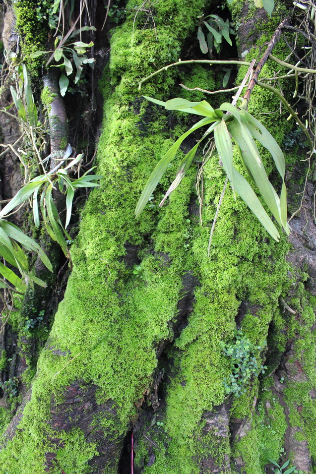 มอสที่ขี้นตามต้นไม้ในบริเวณวัด