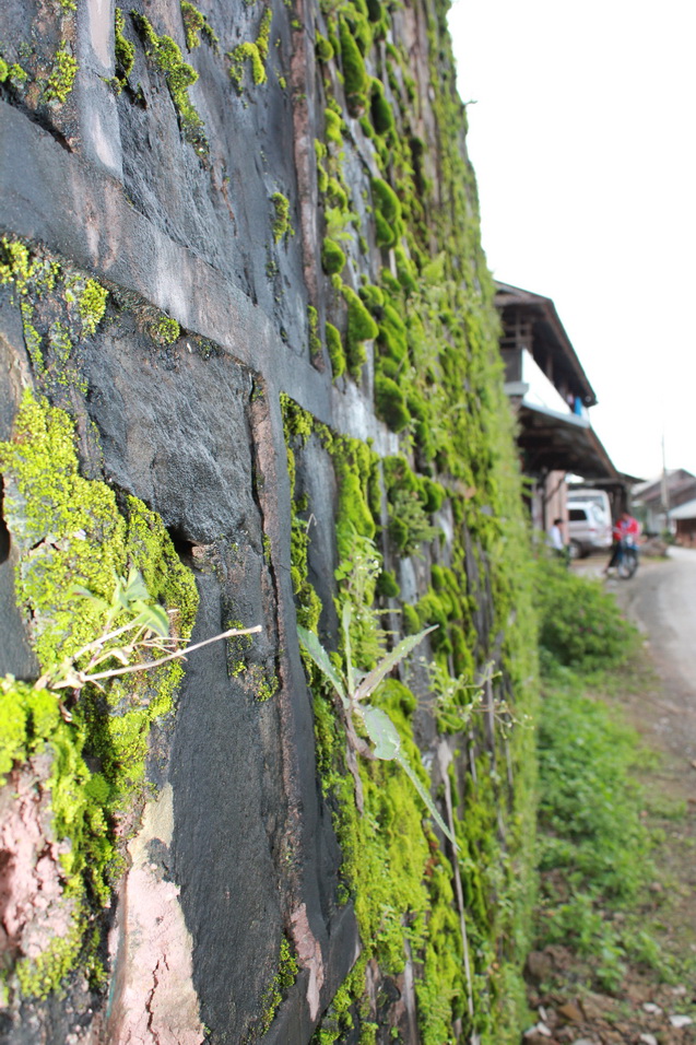 กำแพงที่ตั้งอยู่ในเมืองมีมอสเกาะเต็มไปหมดเนืองจากความชื้นสูงมาก