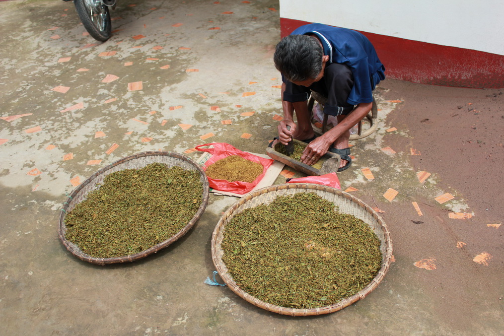 ผุ้เฒ่ากำลังบดยาสมุนไพร