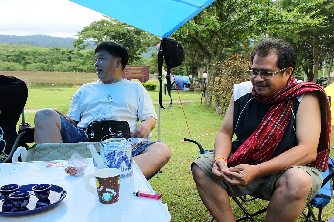 เดินกลับมาที่เต้นท์ สหายกำลังนั่งจิบน้ำชาครับ