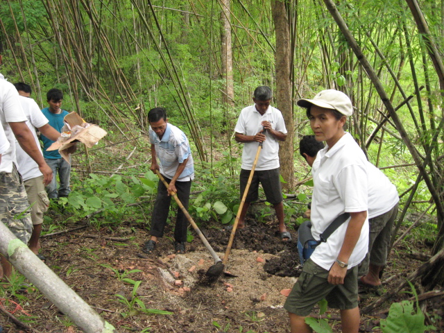 ตอนเช้าเดินเข้าป่าไปทำโป่งดินเทียม