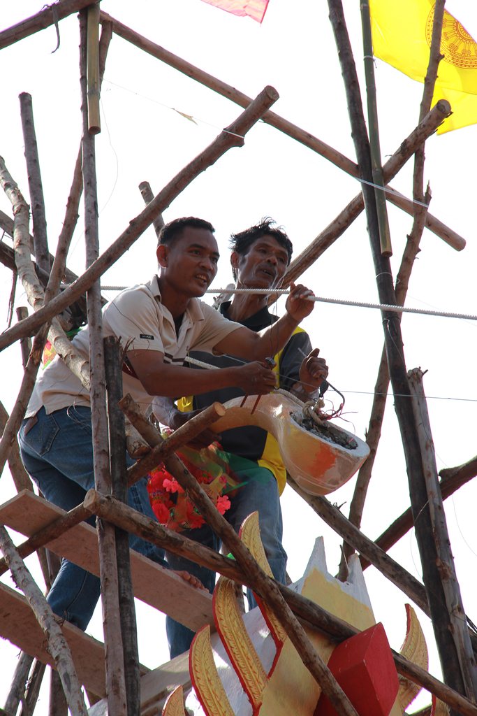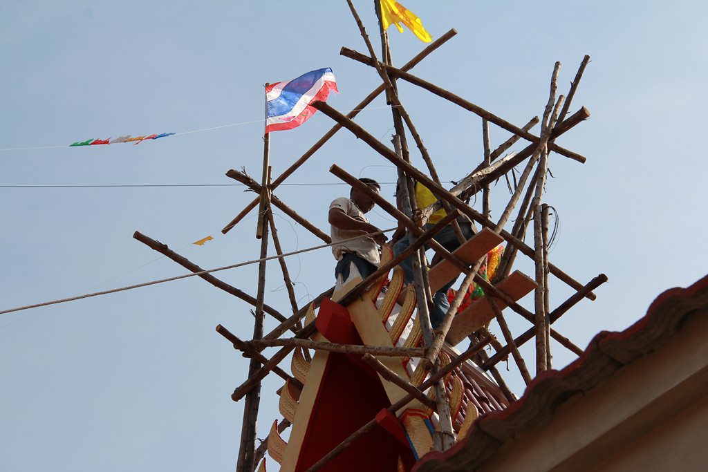 ช่อฟ้าเริ่มขึ้นไปบนยอดหลังคาแล้ว
