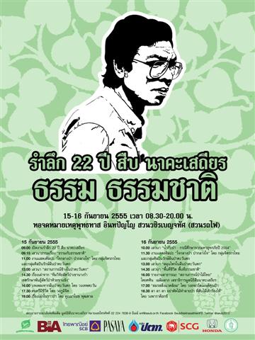 ปีนี้มีจัดงานหลายที่หลายแห่งทั่วประเทศครับ ใกล้ที่ไหนไปที่นั้นครับ ออกไปรวมพลังรำลึกถึงพี่สืบ และหยุดเขือนในเขตอนุรักษ์ด้วยครับ ช่วยกันครับๆ