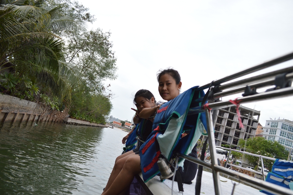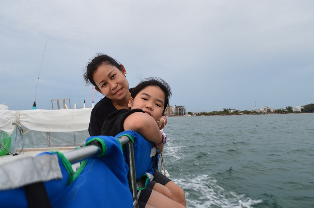 มองกลับมาด้านบนของเรือ คุณแม่และคุณลูกสาว มีความสุขอยู่กับธรรมชาติรอบตัว..