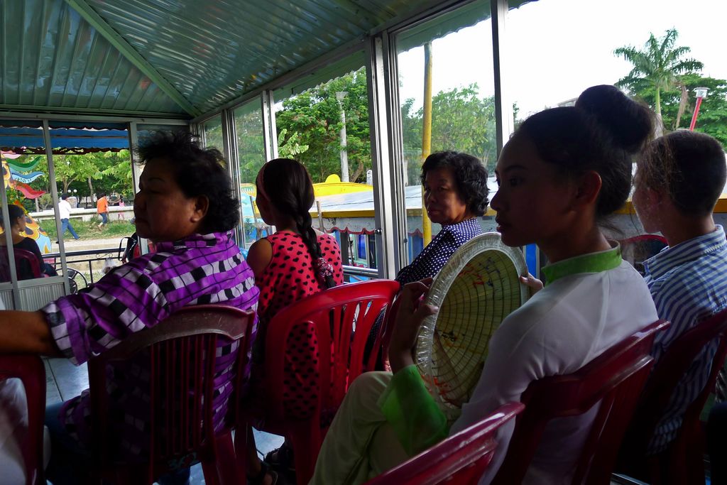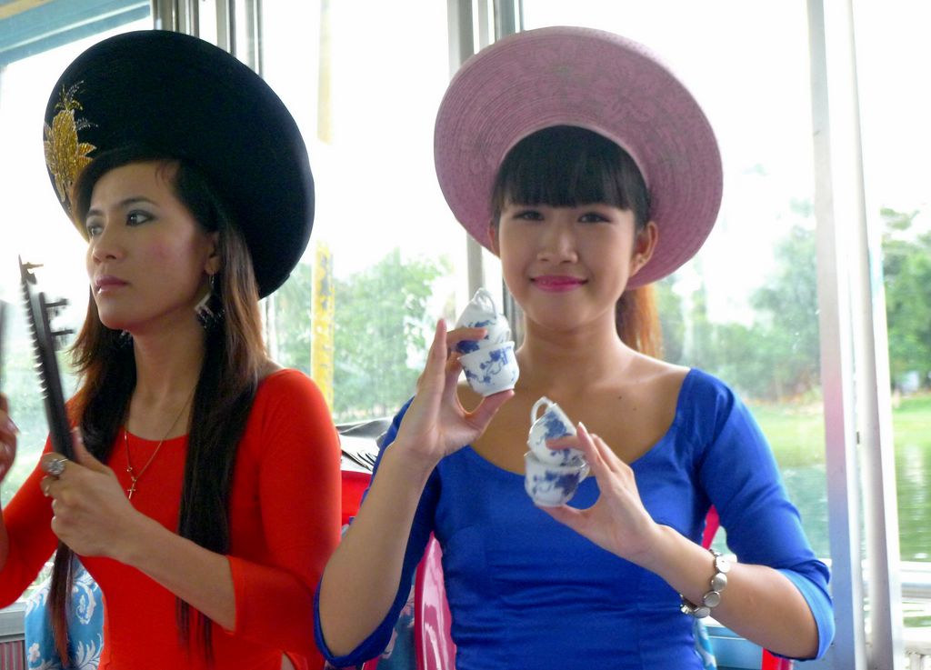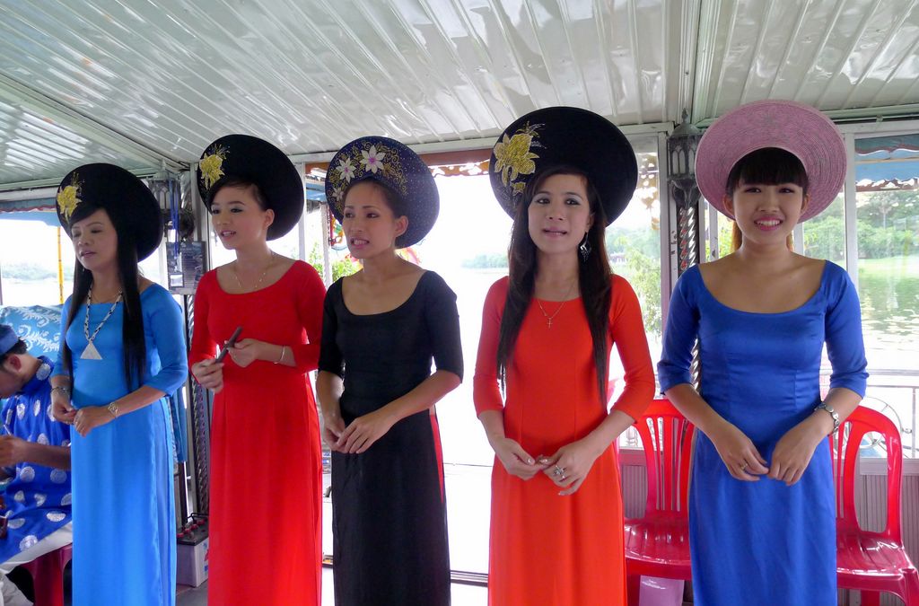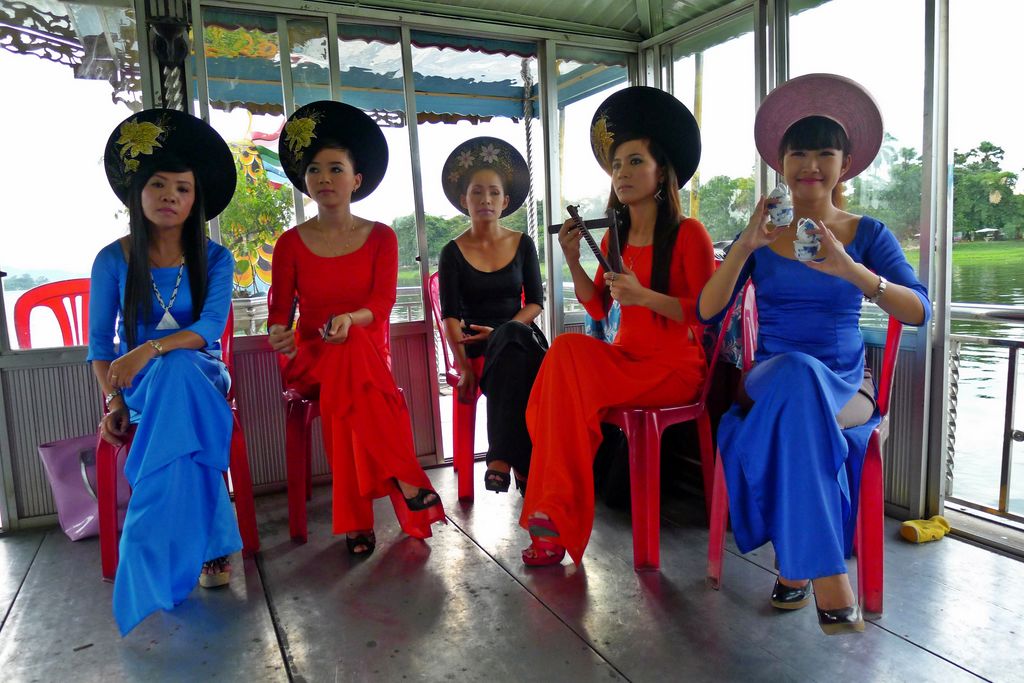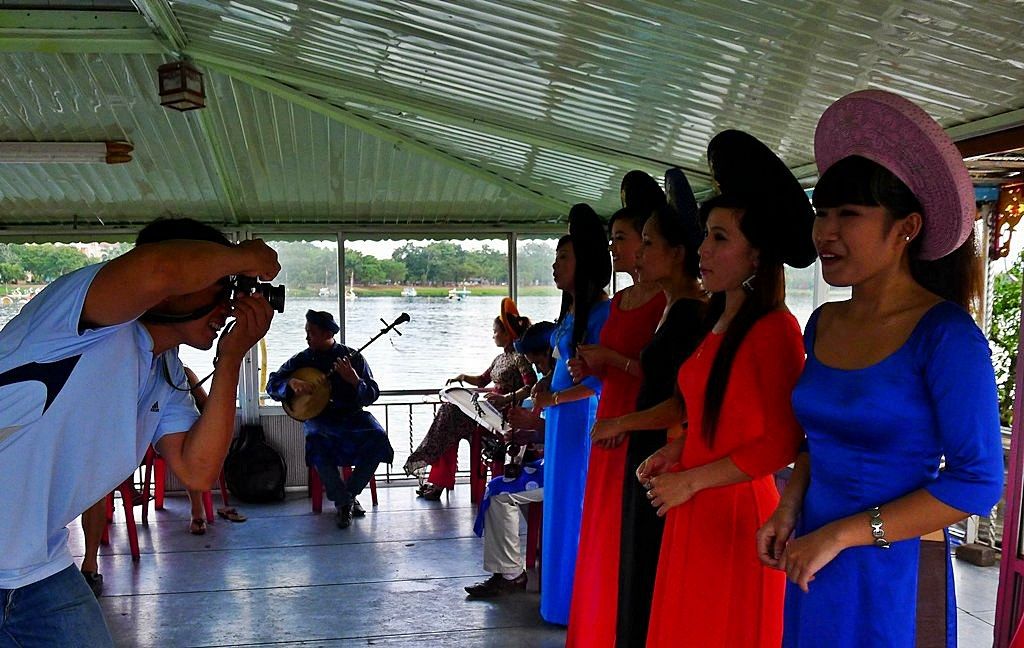 โดยเรือจะไม่ล่องไปไกลเหมือนในตอนกลางวัน แต่จะล่องไปตามสายน้ำหอมเอื่อยๆ ท่ามกลางศิลปินนักร้องนักดนตรีที่มาบรรเลงเพลงพื้นเมืองให้ฟังกันสดๆด้วยเครื่องดนตรีที่เป็นเอกลักษณ์ของเวียดนาม