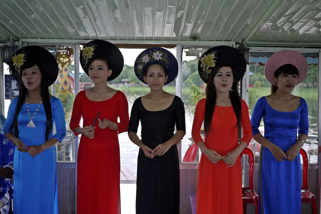 เรือมังกรจุคนได้ราว 50 คน บนเรือจะมีนักร้องนักดนตรีที่จะมาดีดสีตีเป่าตามแบบฉบับของนาฎลีลาเก่าแก่ของเวียดนาม เมื่อเรือเคลื่อนตัวออกจากฝั่งไปอยู่กลางๆแม่น้ำหอม จากนั้นก็ดับเครื่องยนต์ และชมการแสดงจากนักร้องสาวๆในชุดอ่าวหญ่ายสีสวยสด