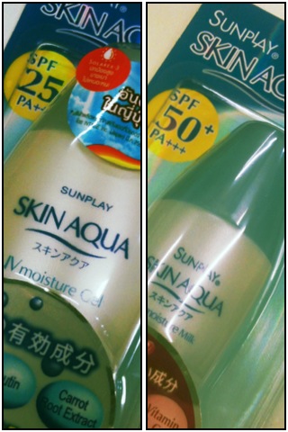 สวัสดีสาวๆทั้งหลาย หลังจากที่เราได้ลงรีวิวแรกของ Sunplay Powdery White กันไป น่าจะประมาณ 2 เดือนที่แล้วเห็นจะได้ วันนี้ สาวก Sunplay อย่างเราก็ได้ฤกษ์ลงรีวิวท้าพิสูจน์ความมันตัวใหม่ โดยคู่ท้าชิงครั้งนี้คือ Sunplay Skin Aqua SPF 50 สูตรโลชั่นน้ำนม ปะทะ Sunplay Skin Aqua SPF 25 สูตรเจล