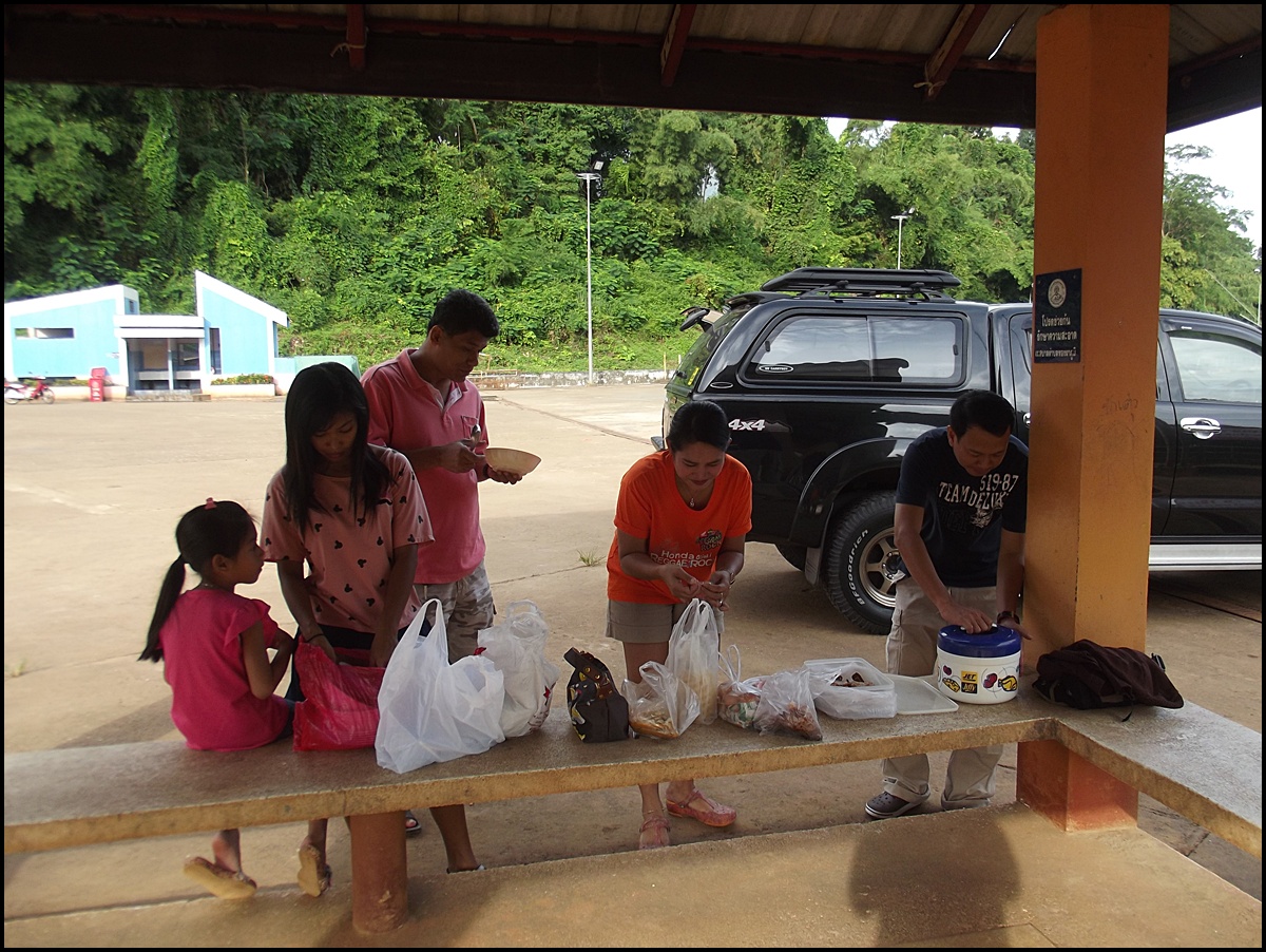 นัดเจอพี่โก๋ที่ ไทรโยค...แล้วขับตาม ๆ กันมา จนถึงทองผาภูมิ เลยแวะกินข้าวกันที่ชายแม่น้ำหลังตลาดทองผาภูมิ เพราะพี่โก๋บอกว่า " ยังไง ยังไง สะพานมอญก็ไม่หนีเราไปไหน " " ขอกินข้าวก่อนดีกว่า" อิ อิ
