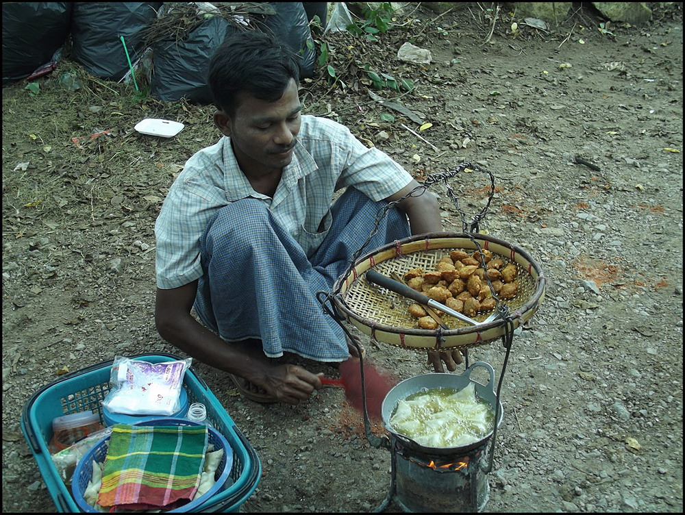 พอลงจากรถก็เจอชายคนนี้กำลังทอดอะไรบางอย่าง