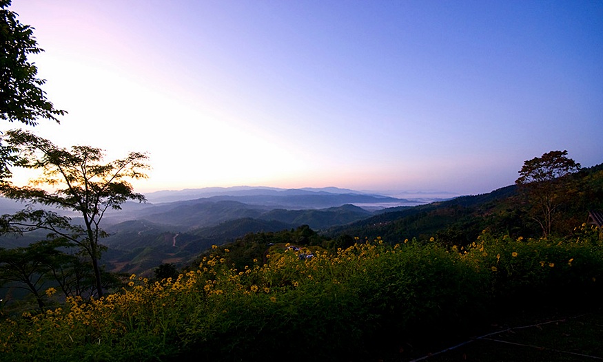 ไปดูดอยสีเหลืองตัดกับท้องฟ้าสีฟ้าสด..