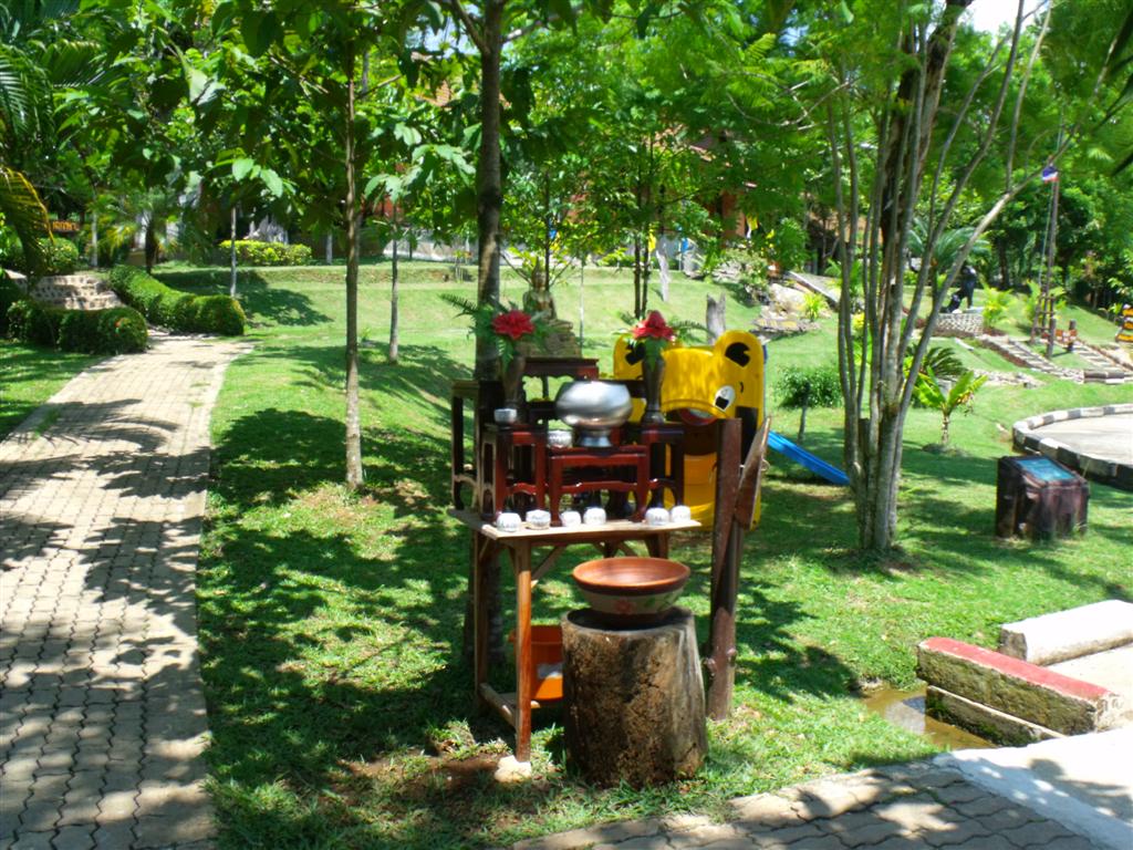 มีเก้าอี้ม้าหิน เตรียมไว้ให้นั่งหลายชุด