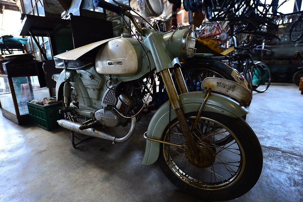 เดินไปกันต่อครับ เดินมาถึงโรงเรื่อนใหญ่นั่นเป็นที่เก็บรถจักรยาน/ชิ้นส่วน/อะไหล่ของจักรยานรุ่นเก่าๆ หลายๆยี่ห้อ/รุ่น ก็เป็นตำนานที่เราเคยได้ยินผู้ใหญ่ (80-90 ปี โดยประมาณ)เล่าให้ฟังอะครับ ซึ่งของทุกๆอย่างย่อมมีจุดเริ่มต้นและสิ้นสุด แล้วจะกลายไปเป็นตำนานเล่าสู่กันฟังรุ่นต่อรุ่น