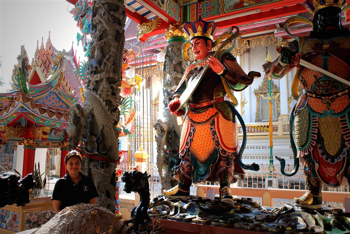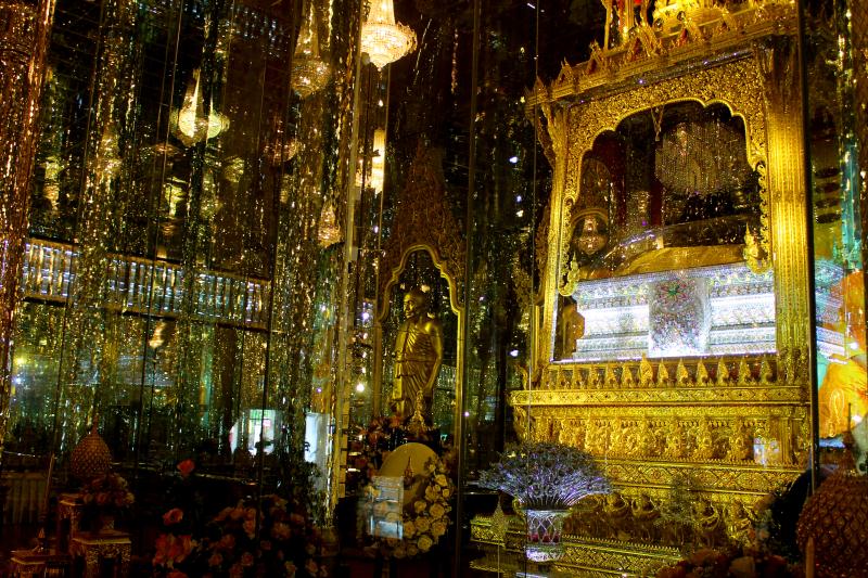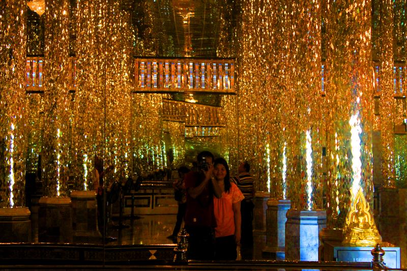 นอกอาคารมีพระพุทธรูปสีแดงทั้งองค์