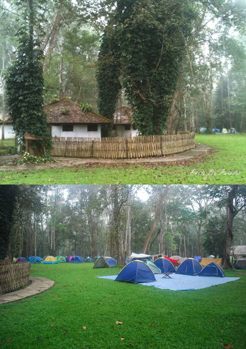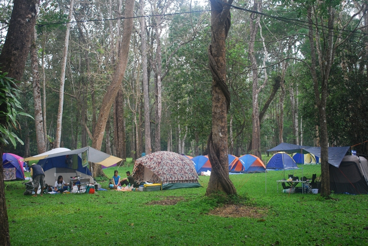 บรรยากาศยามเช้าบริเวณลานสำหรับ camping