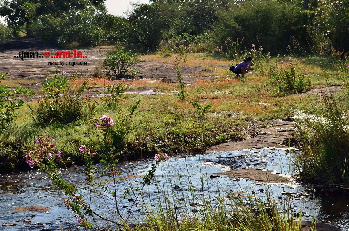 ริมลำธารที่มีดอกไม้ขนาดเล็กขึ้นอยู่ตามลานหิน ถ้าอากาศไม่ แล้งเร็ว ร้อน รุนแรง เช่นปีนี้..เหนือน้ำตกห้วยพอก น่าจะ สะพรั่งไป ด้วย ดอกกระดุมเงิน
