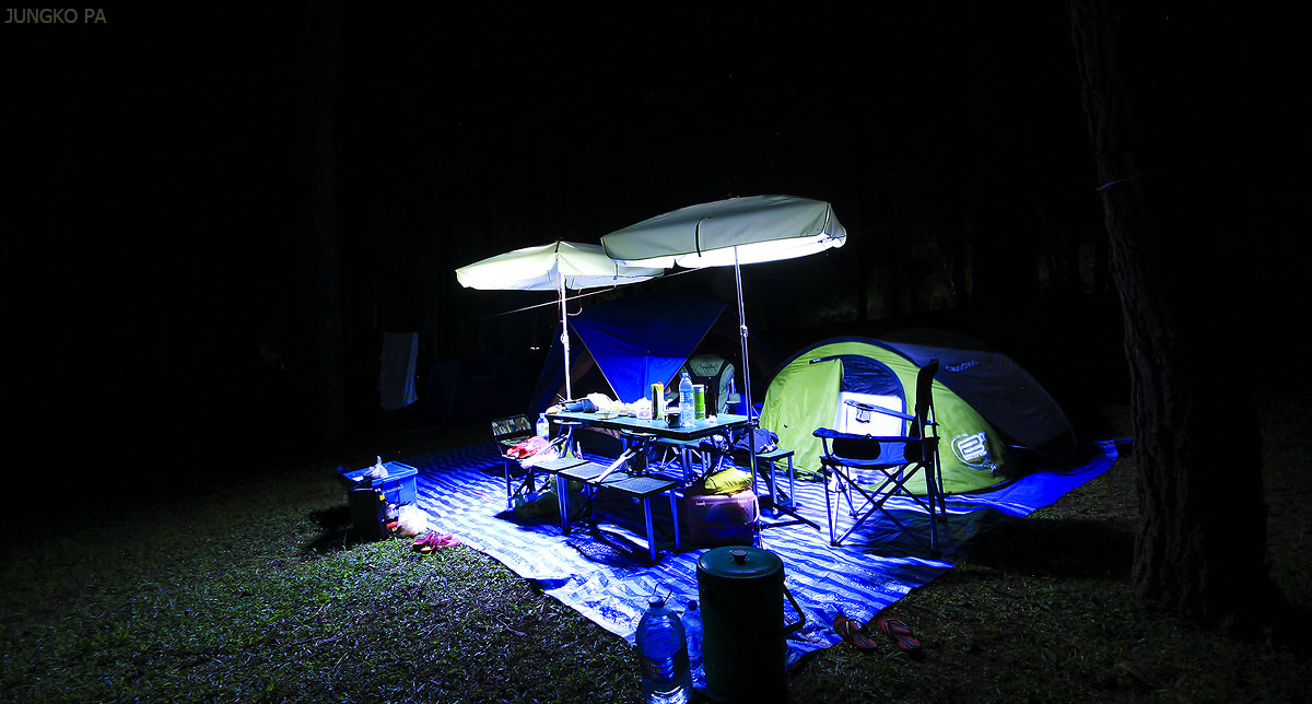 เปิดภาพด้วย เต้นท์และอุปกรณ์ที่เรานอนกัน ท่ามกลางความมืดมิด มีกันไม่กี่เต้นท์เอง สงบได้ใจมากๆ เลยครับ