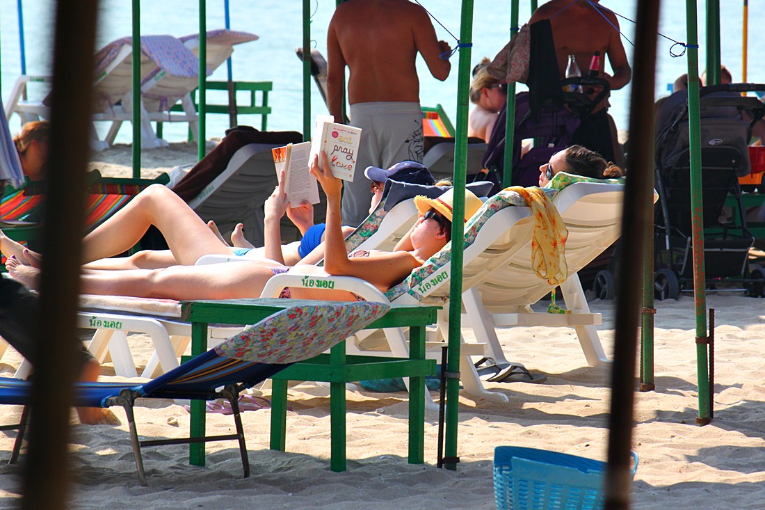 ทำกิจกรรมกันต่าง ๆ บ้างก็เล่นน้ำ บ้างก็นอนอาบแดด
