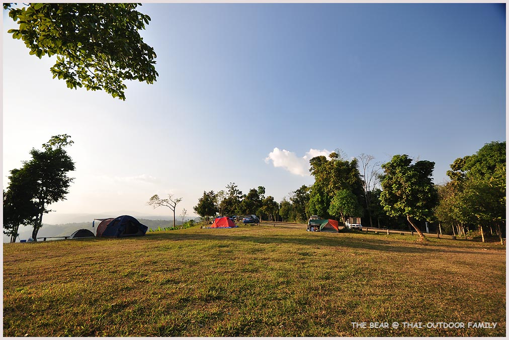 มีลานกางเต็นท์กว้างขวาง สามารถชมวิว พระอาทิตย์ลับขอบฟ้าในยามเย็นได้จากหน้าเต็นท์กันเลย