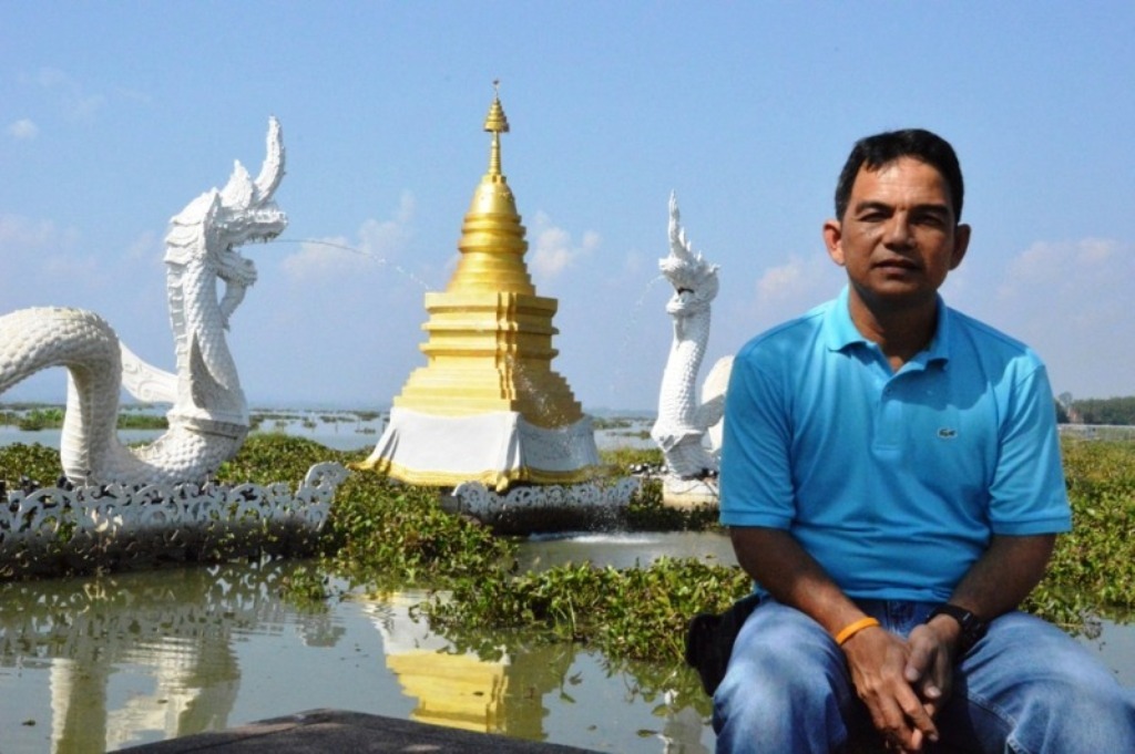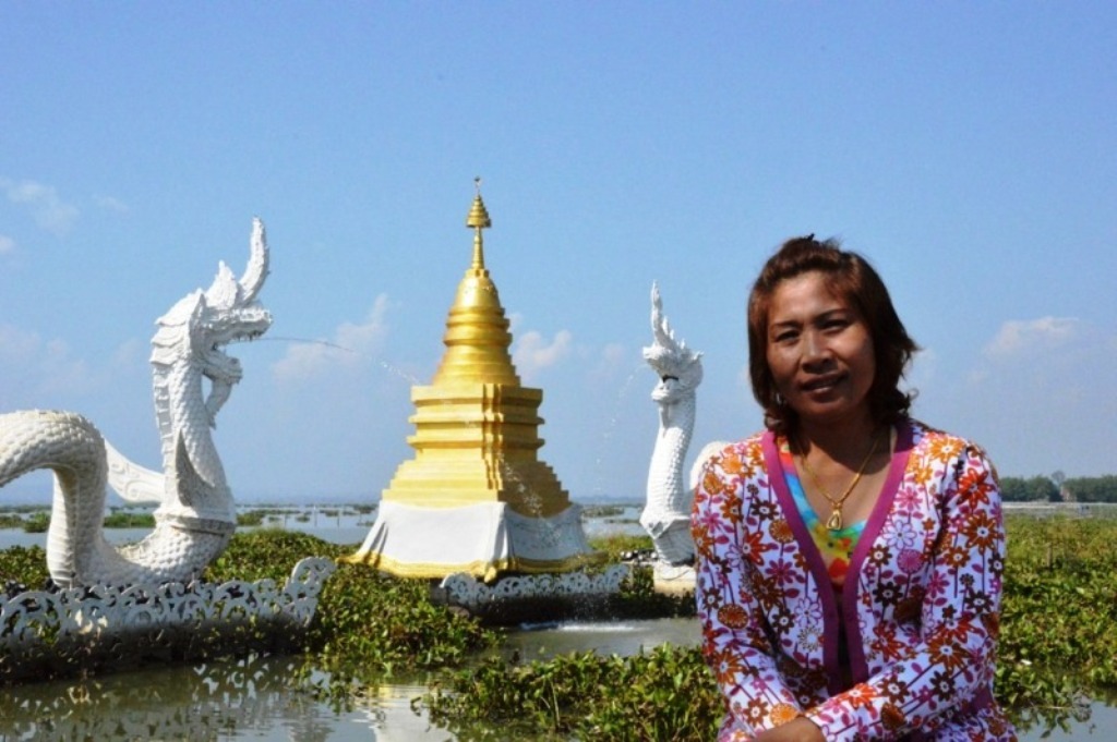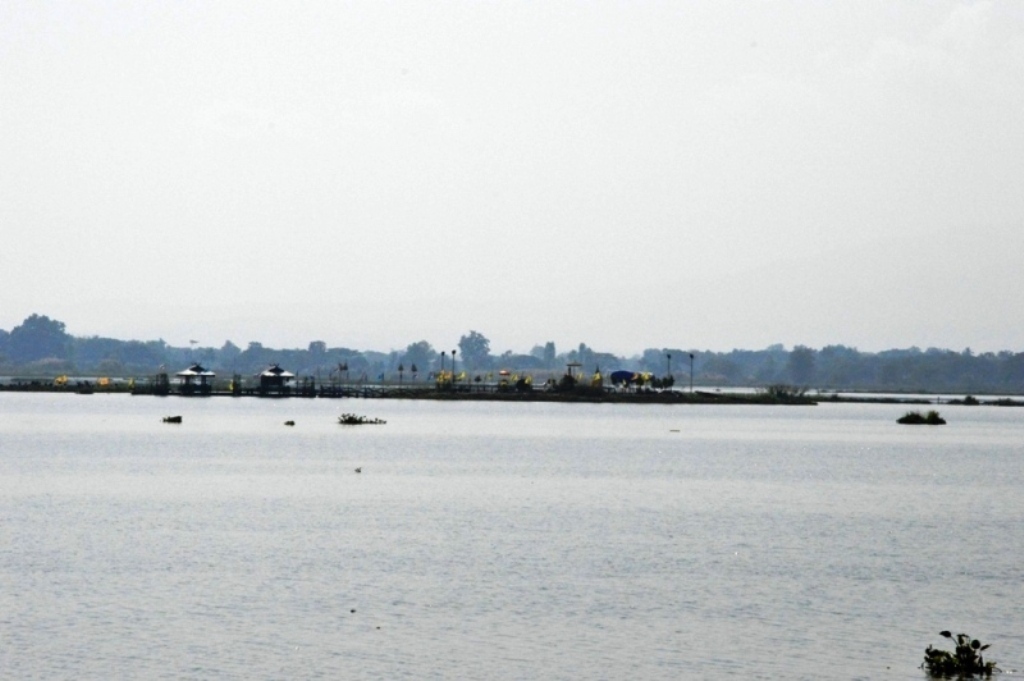 ที่นี่เราอยู่ริมกว๊านจะมองเห็นวัดที่อยู่กลางน้ำ ครับ
