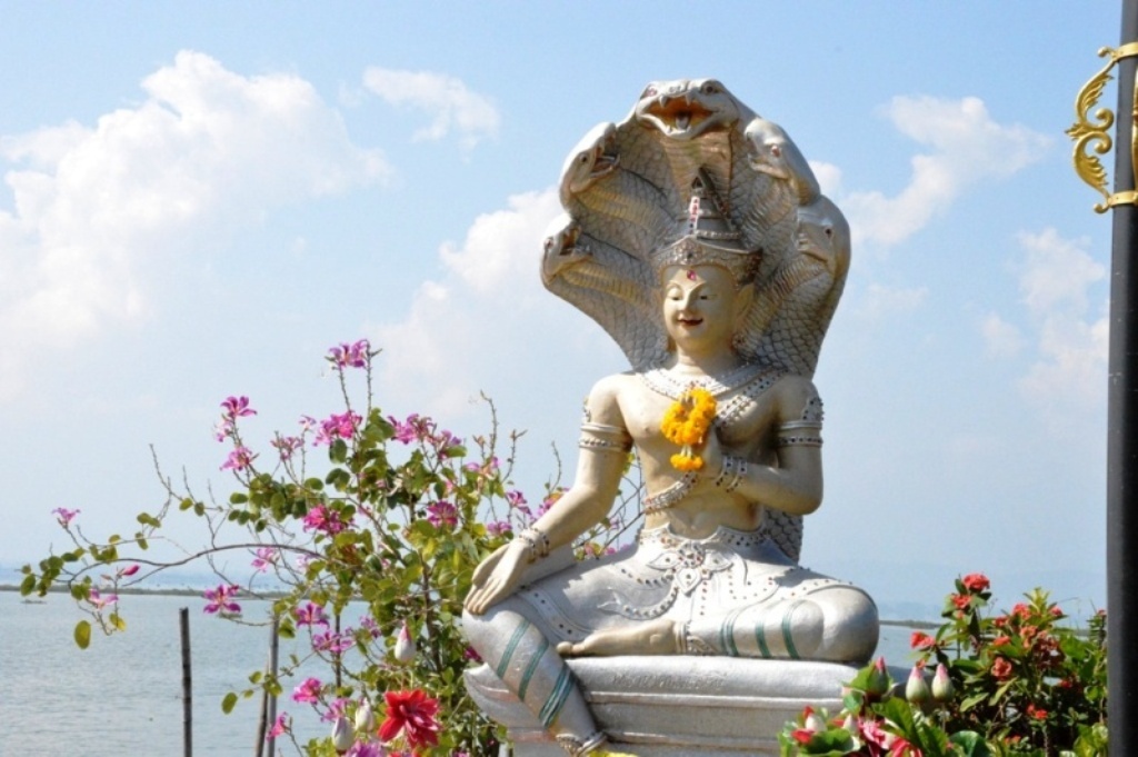 วัดนี้ครับจะมีเรือบริการพาไปไหว้พระที่กลางน้ำด้วยนะครับ