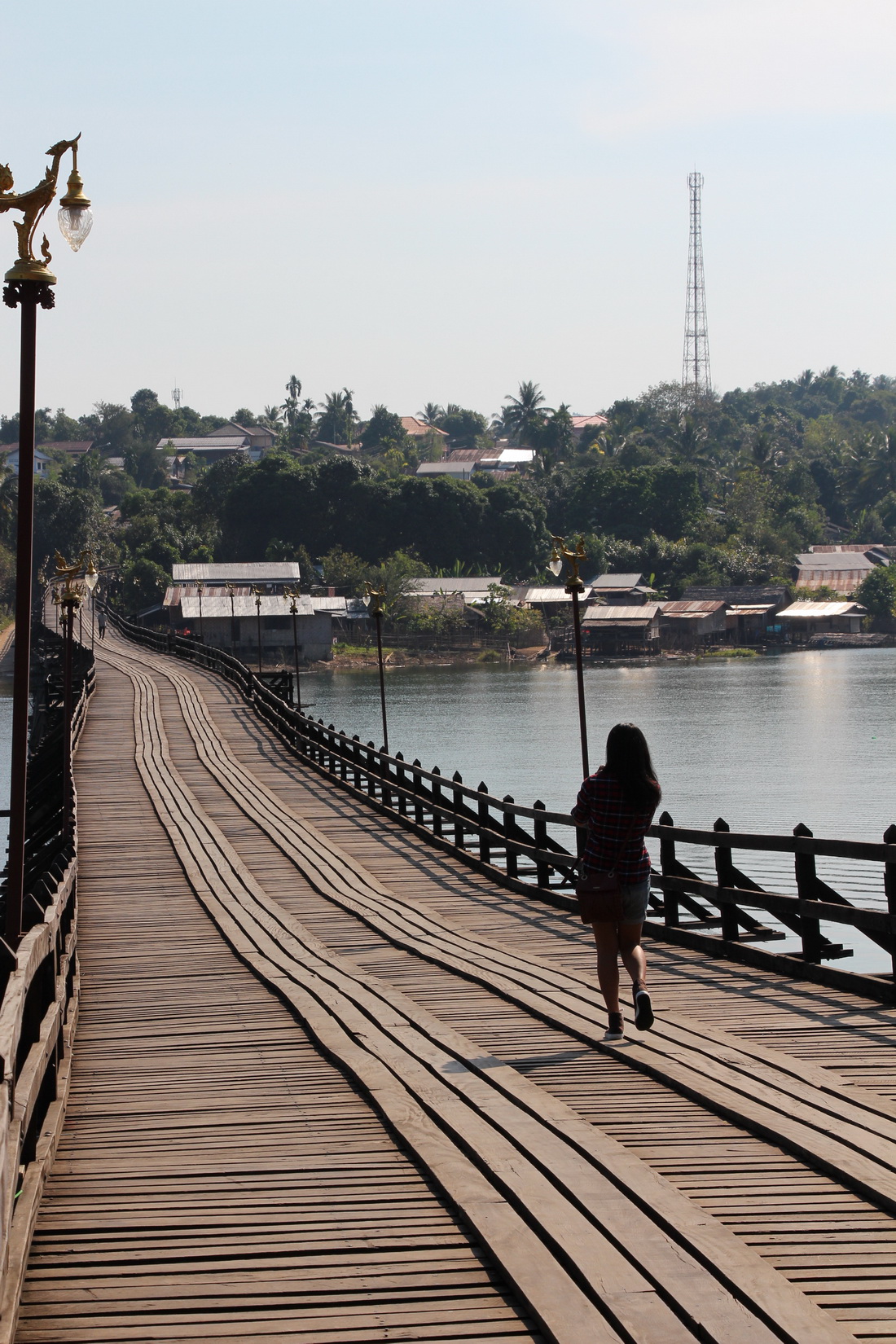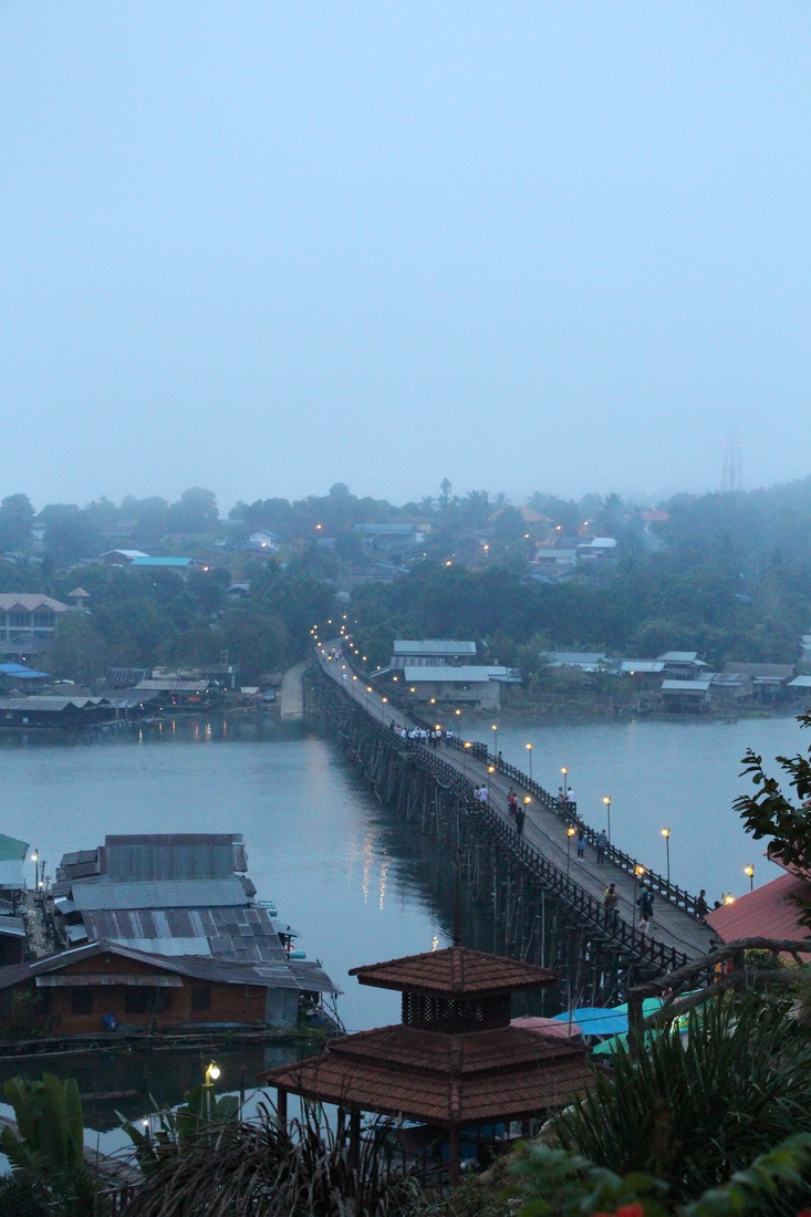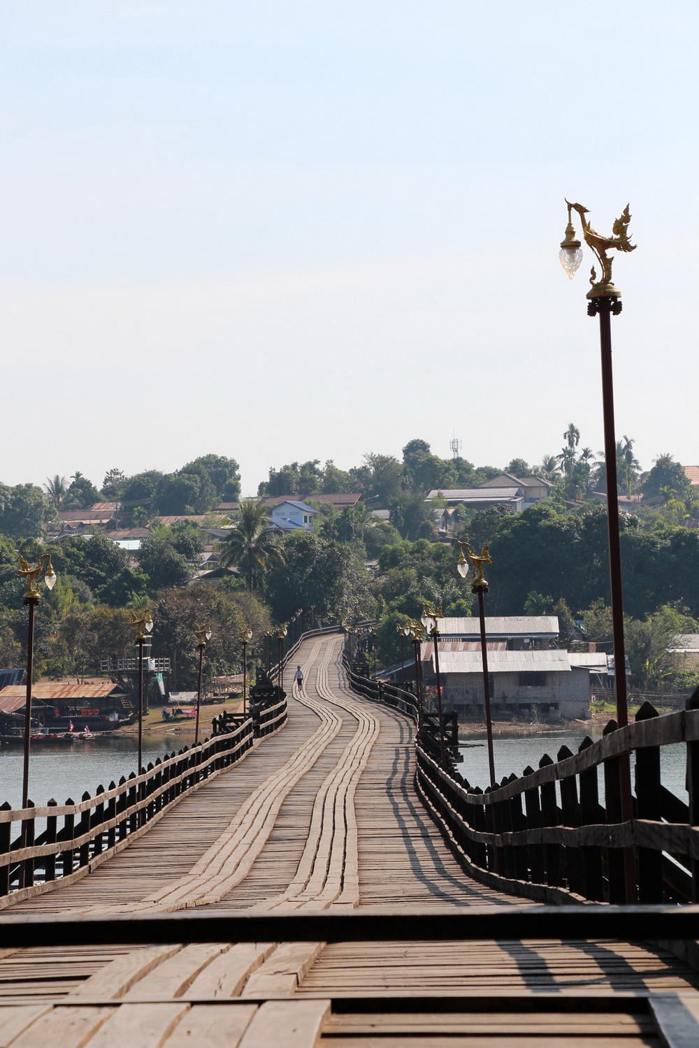 แบบไกล้ชิด สะพานไม้ที่ยาวที่สุดในไทย สะพานมอญ