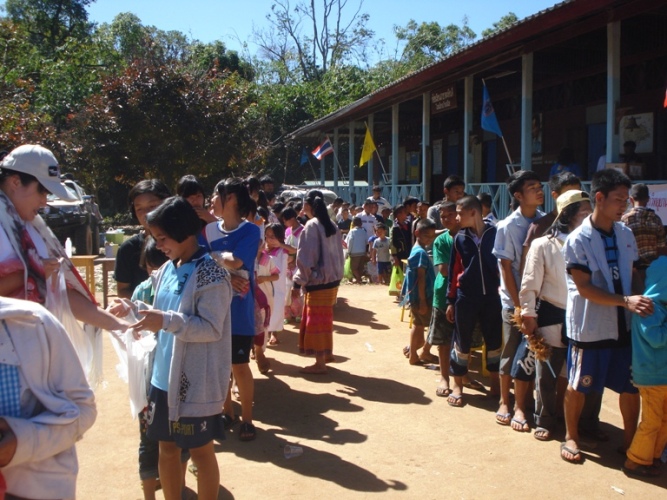 ไม่รู้ว่าเด็กหรือเปล่า กล้ามาเข้าแถวรับ เราก็กล้าให้เหมือนกัน ( กลัวของเหลือ หุ หุ )