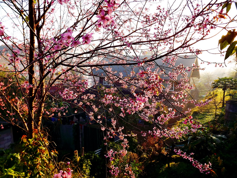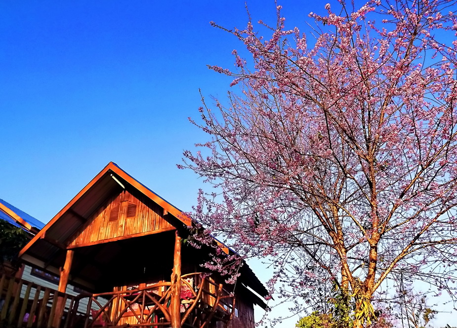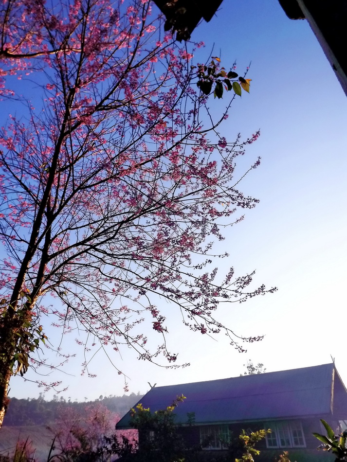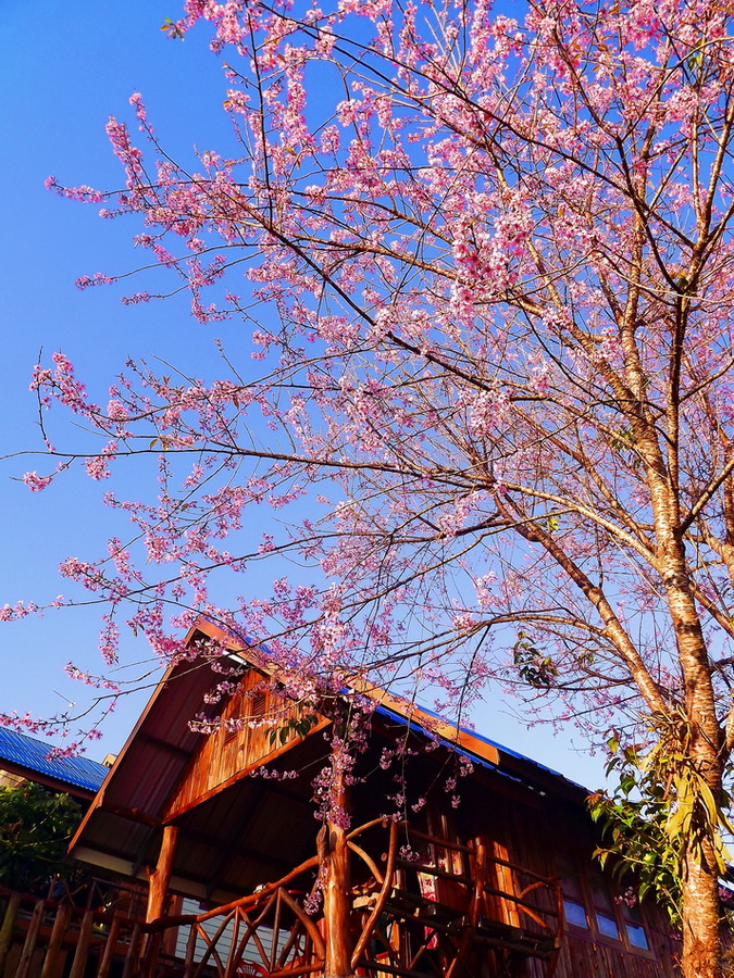 บ้านหลังนี้ จะมีต้นซากุระปลูกอยู่หน้าบ้านติดกับนอกกระชานเลยครับ และปีนี้เ ป็นต้นนี้ สวยที่สุดในพื้นที่นี้แล้วครับ