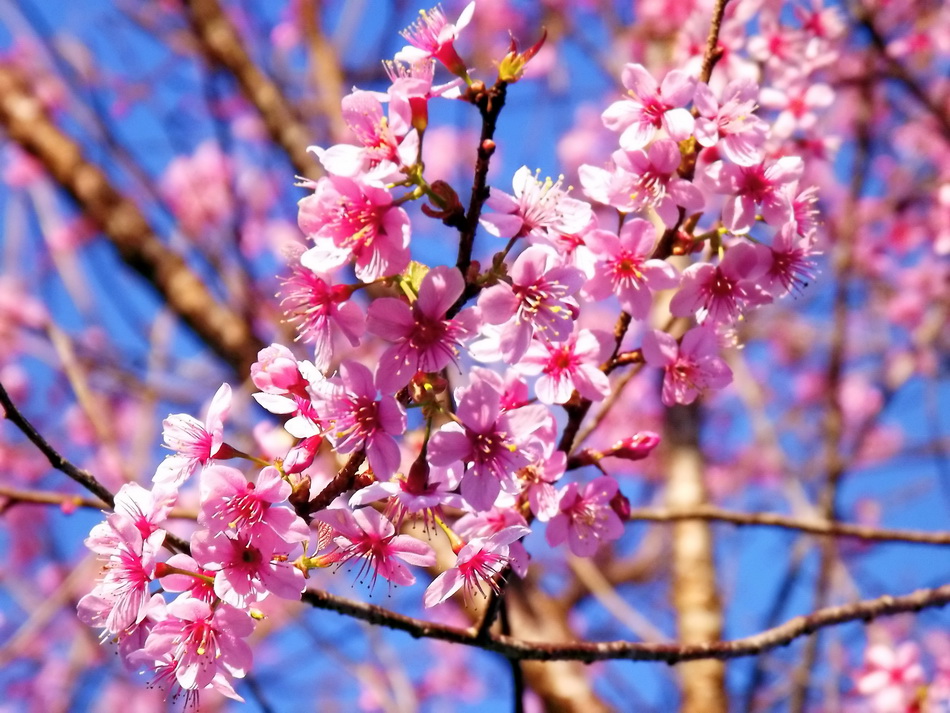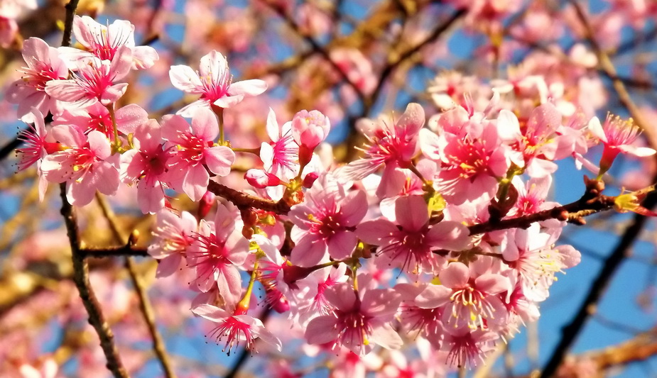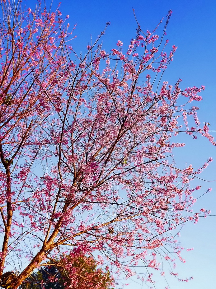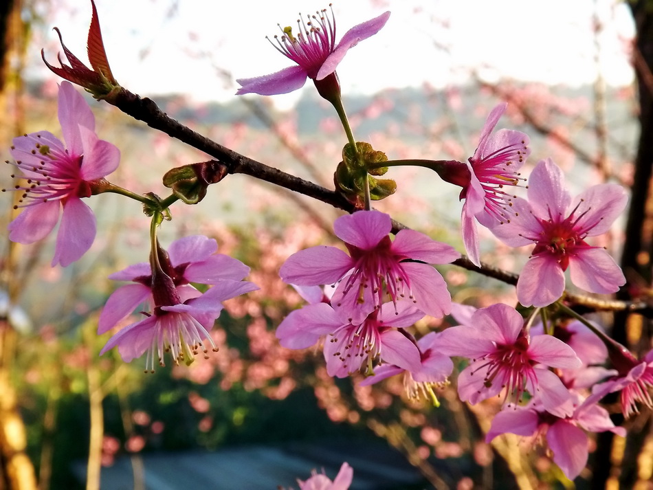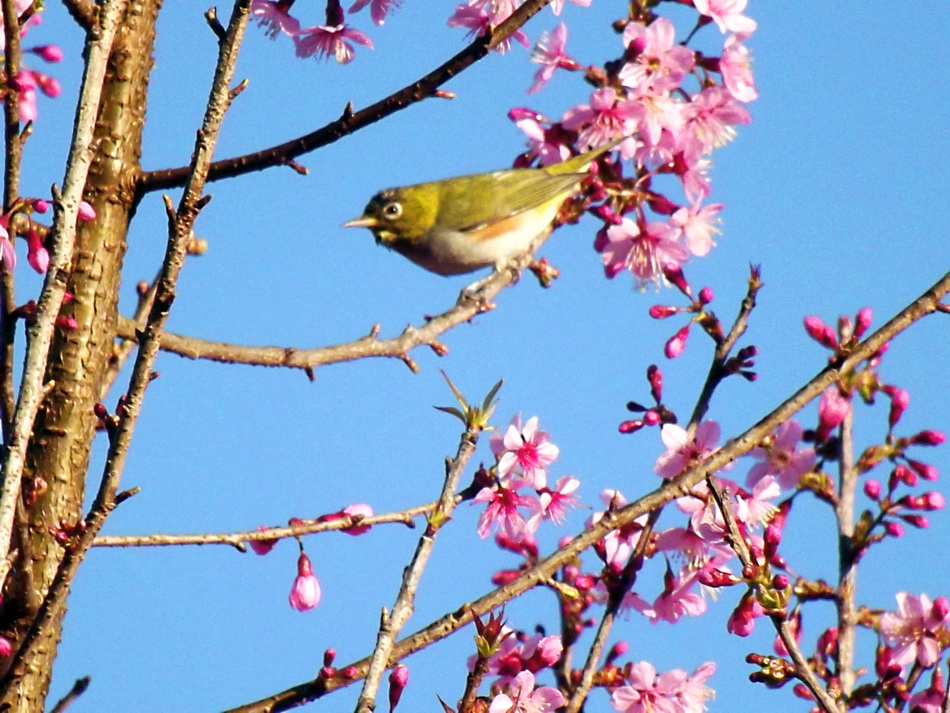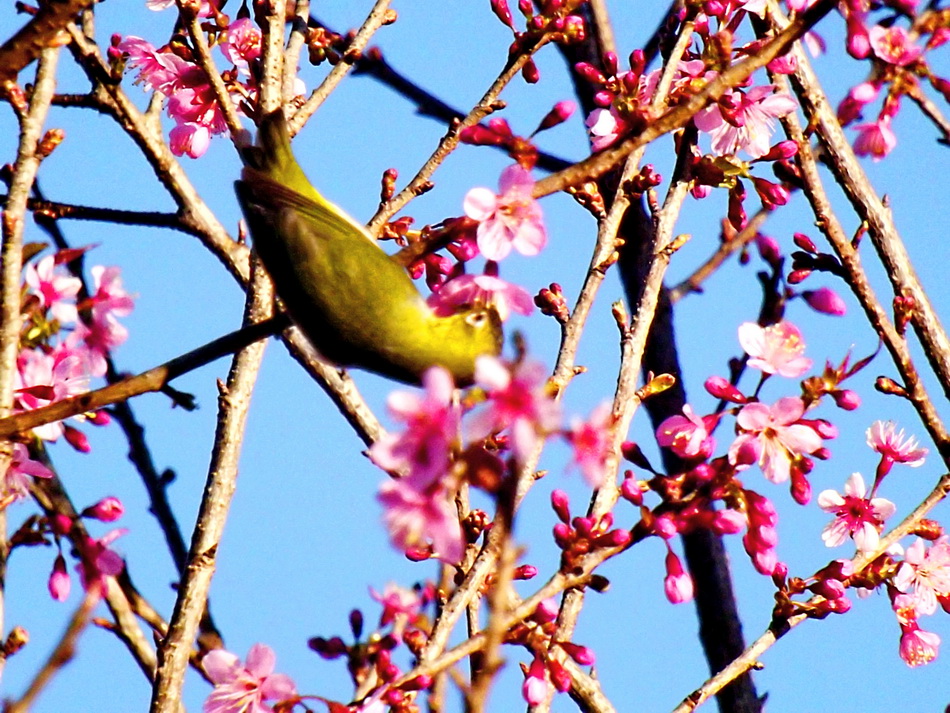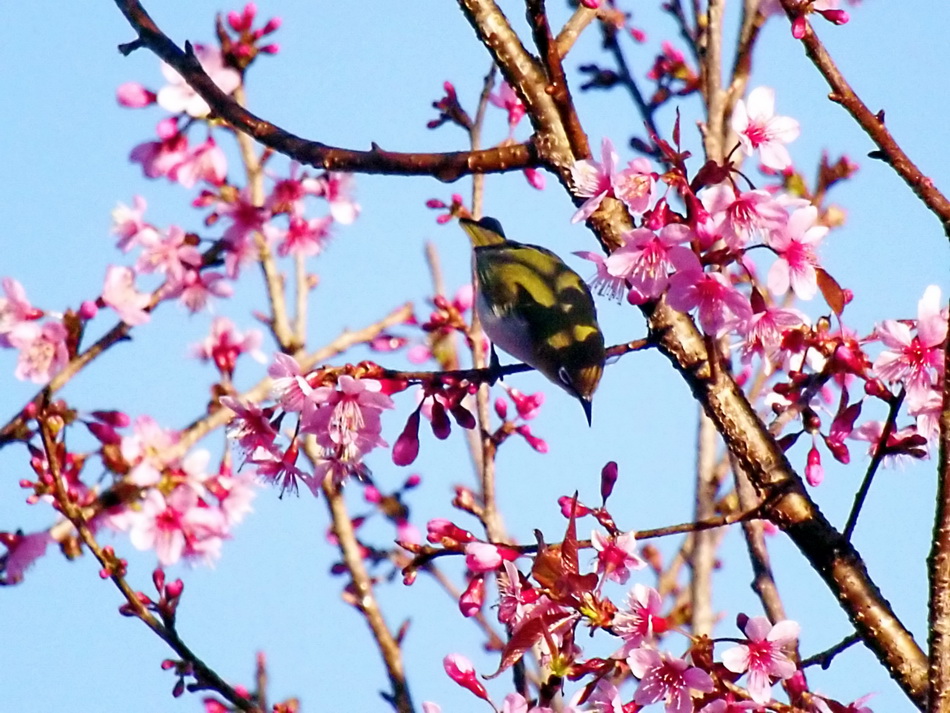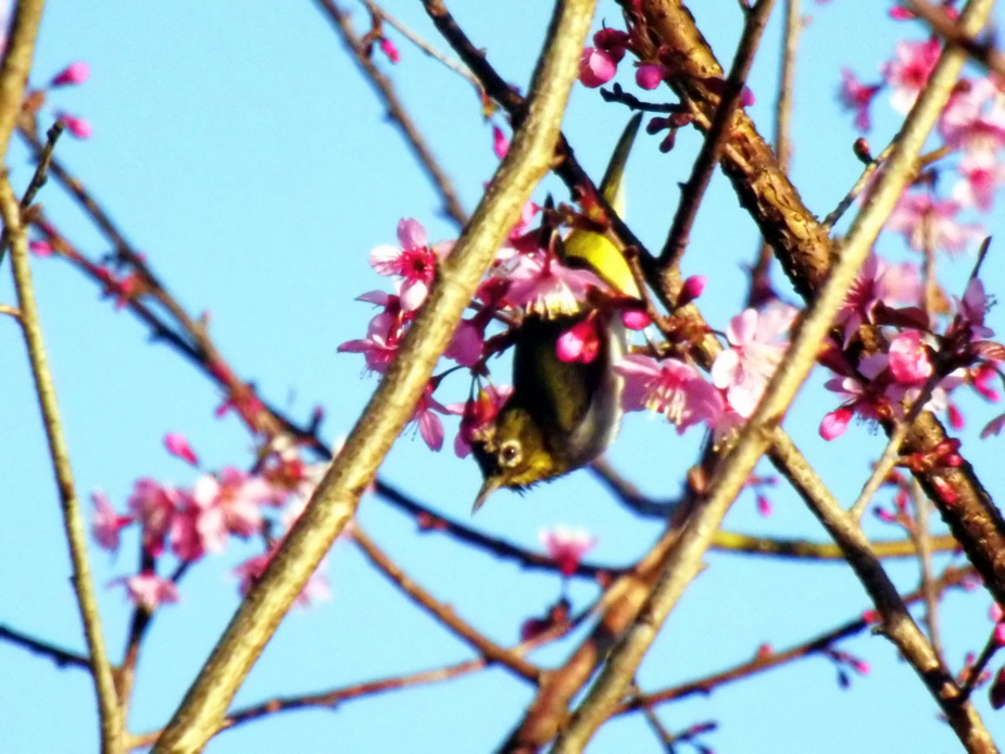 พอสาย ๆ ก็จะมีนกตัวเล็ก ๆ มากันเป็นฝูง พากันมากินน้ำหวานดอกซากุระเต็มต้นเลย ส่งเสียงกันดังเจี๊ยวจ๊าวหมด