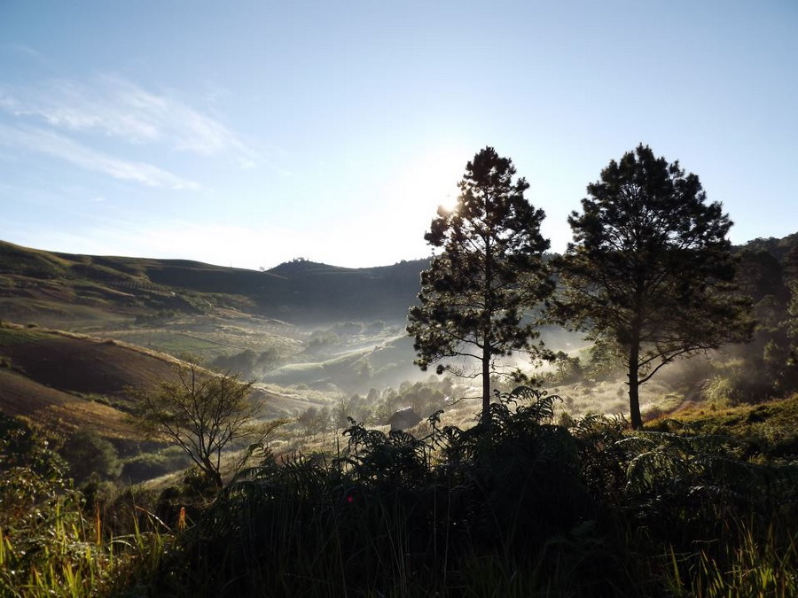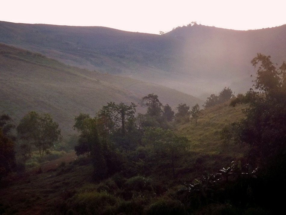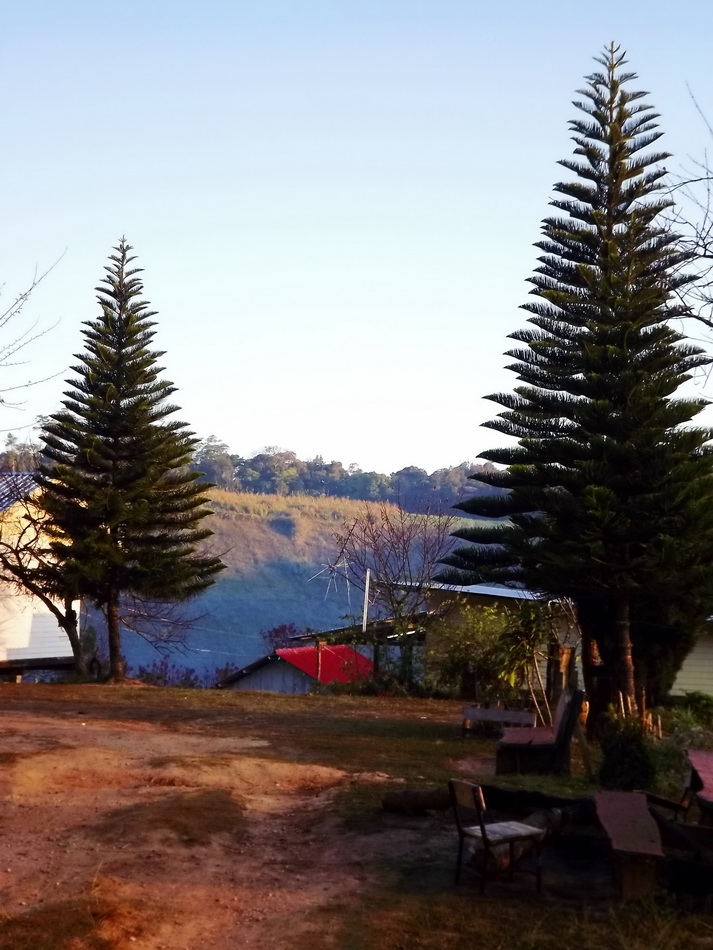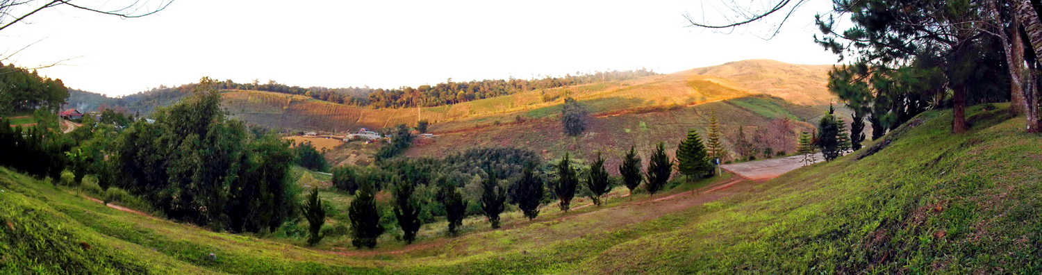 บรรยากาศบริเวณในหุบเขาที่เป็นเหมือนแอ่งกะทะ เก็บความเย็นดีนักแล และทิวเขาที่เห็นยอดสูงสุดนั้นคือ ภูร่องกล้าครับ หรืออีกชื่อหนึ่งคือ ภูอนุสาวรีย์ ที่เรียกเช่นนั้น เพราะเมื่อก่อนทางการเคยคิดที่จะทำอนุสาวรีย์ที่นี่มาก่อนครับ แต่ไม่ทราบสาเหตุใด สุดท้าย ไปสร้างที่เขาค้อครับ
