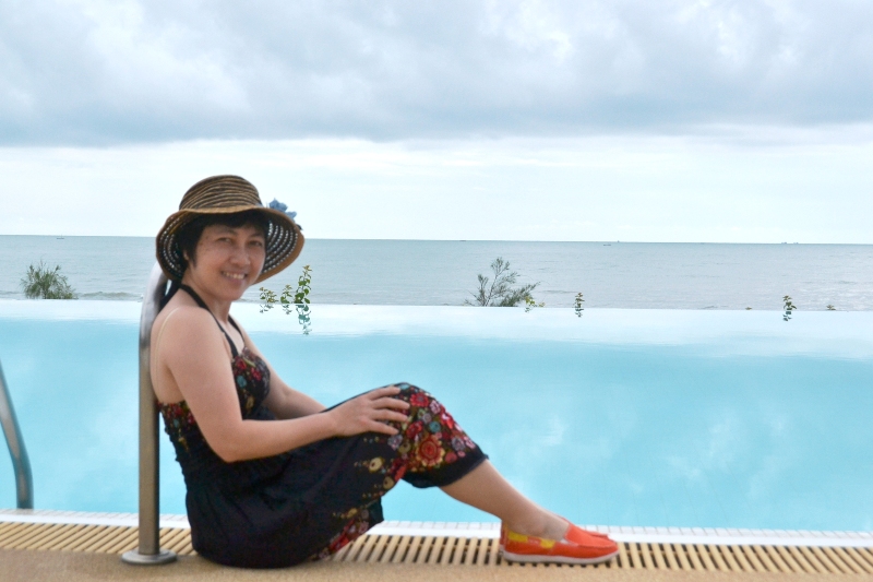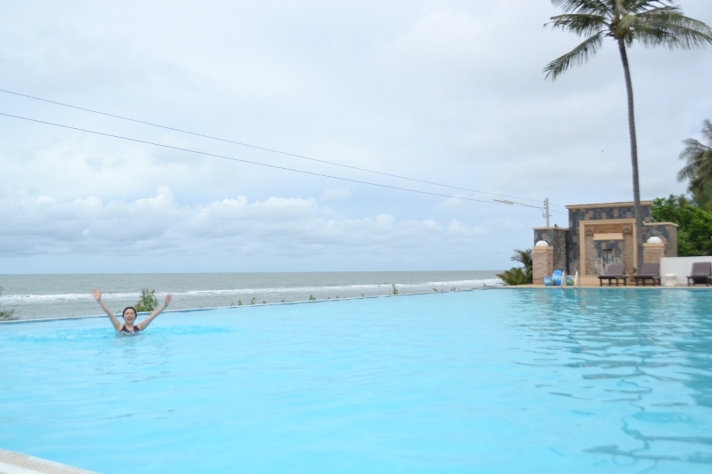 สระว่ายน้ำที่นี่ ทำระนาบกับขอบฟ้า และ น้ำทะเล ได้สวยมากครับ