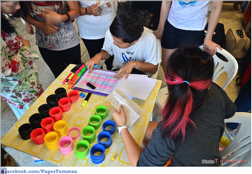มาถึงก็ต้องเช็คชื่อ เพื่อรับวิชแบรนด์ กันก่อน เขาจะแยกสีตามกรุ๊ปทัวร์แยกกันไปตามเกาะ