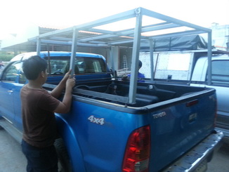 หลังจากรออลูมิเนียมเพื่อทำฝาปิดด้านหลัง มีเหยื่อมาให้เล่นอีกคัน เป็น วีโก้ ครับ พ่อตาเห็นรถผมแล้วชอบ ก็เลยบอกให้ทำให้ด้วย