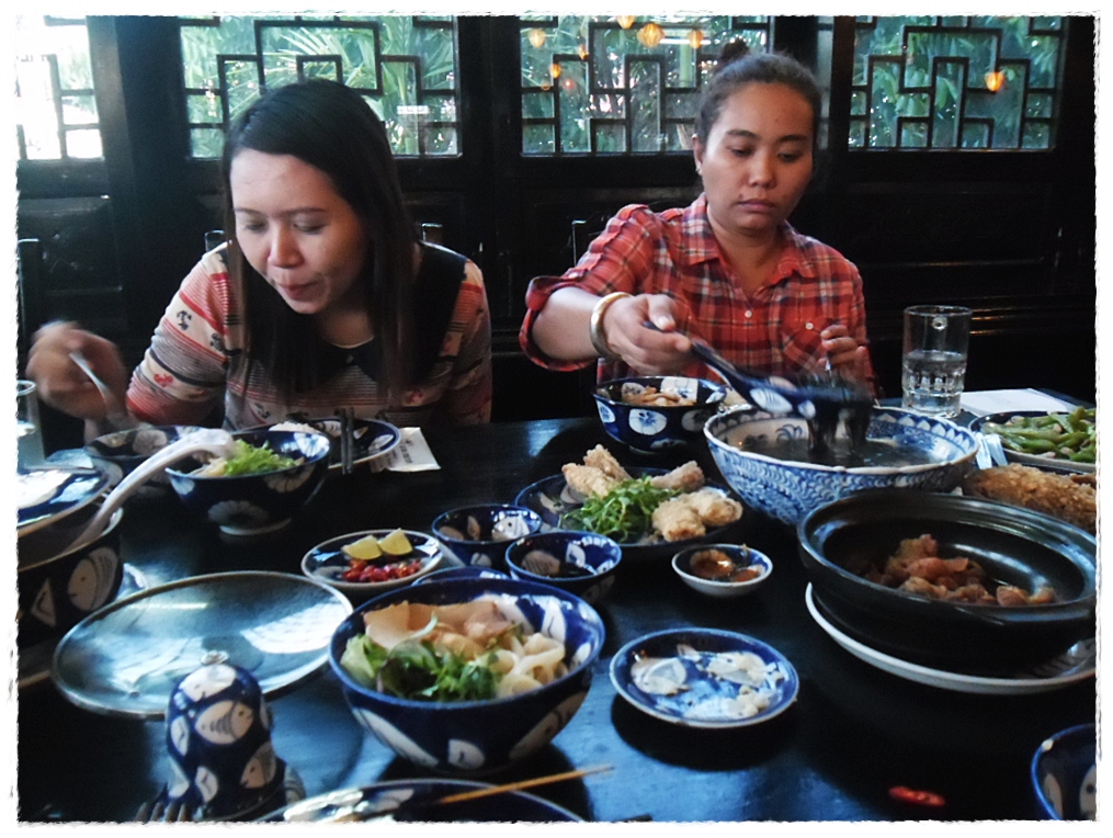 เดินเล่น + ช็อปกันไปถึง 5 โมงเย็นกว่าๆ..ก็เดินทางไปทานข้าว..ส่วนใหญ่ที่เวียดนามจะเข้าทานข้าวร้านภัตตาคารตอนมื้อกลางวันกับมื้อเย็น..เช้าจะทานที่โรงแรม...อาหารที่เวียดนามจะจืดซะส่วนใหญ่..เป็นพวกผักต้มใส่เกลือนิดหน่อย..แล้วก็ปลา..มิน่าคนเวียดนามไม่ค่อยจะอ้วน..