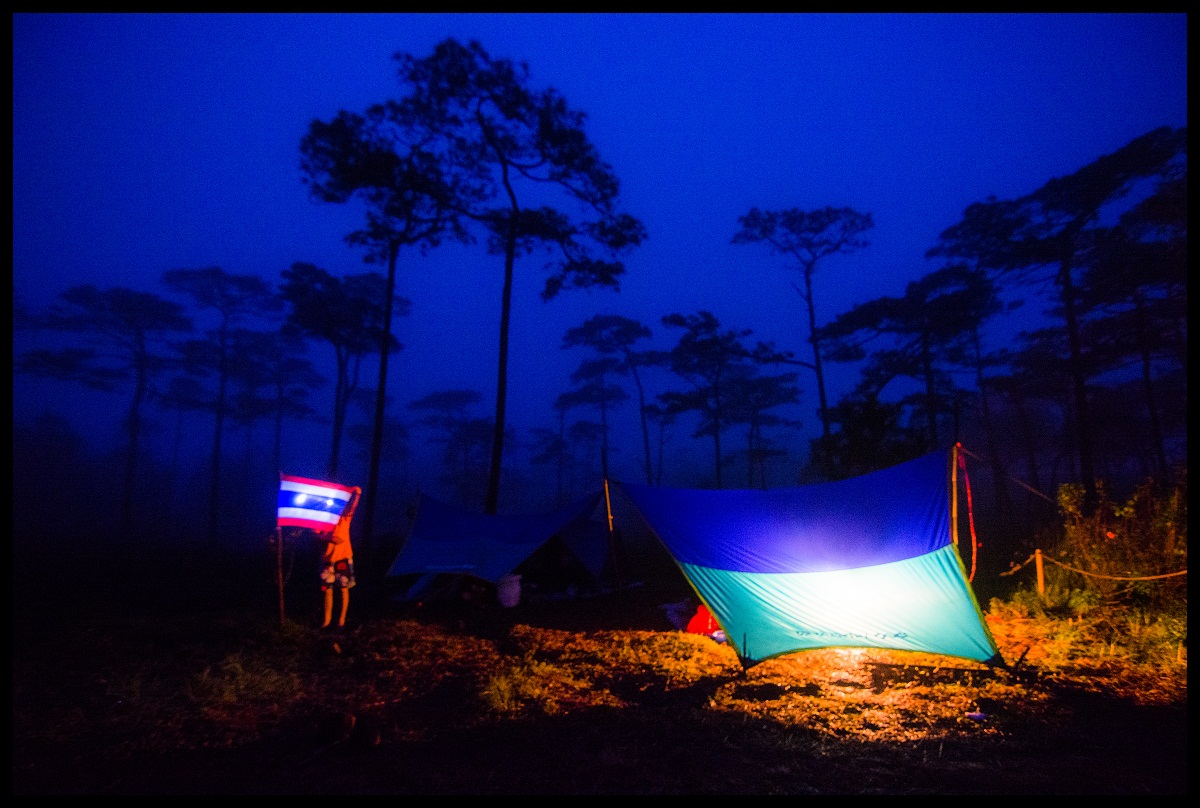 ในค่ำคืนนี้ มีนักท่องเที่ยวน้อยมาก นับแล้วเหลือแค่ 6 เต็นท์ เข้านอนกันแต่หัวค่ำ คืนนี้สายฝนได้โปรยลงมีแบบพรำๆ กระทบลงฟรายชีท หลับสบายไปเลยครับ