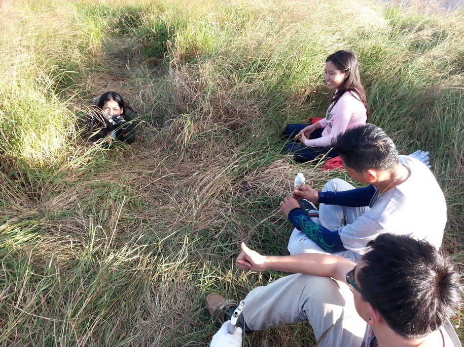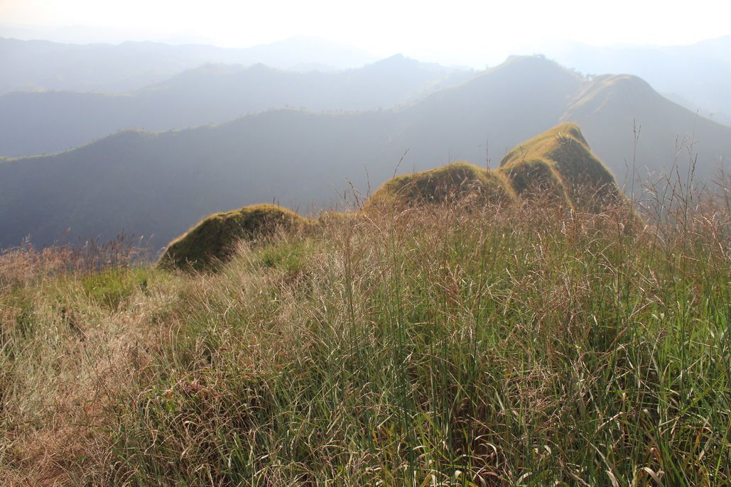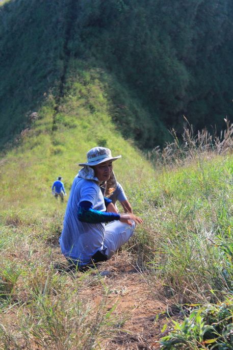 นั่งมองย้อนกลับไปสันเขาแต่ละลูกทีี่จะเดินกลับ เพราะถ้ามืดลง การเดินจะลำบาก