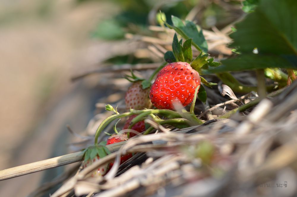 เดินไปอีก 200 เมตร ไม่ไกล เราก็จะพบกับไร่สตอเบอรี่ ที่นี่เจ้าของเขาให้เราเดินเก็บเองแล้วนำมาชั่ง