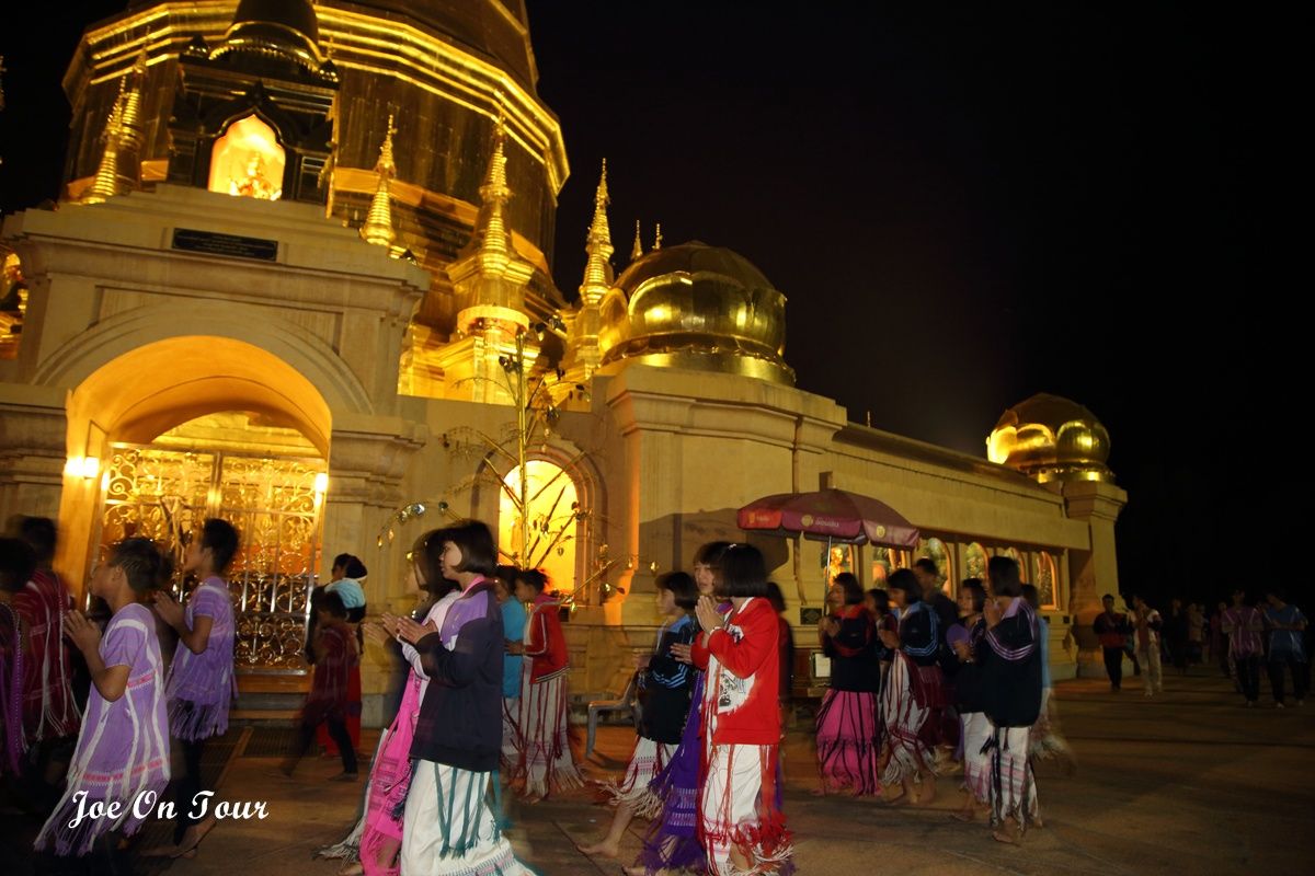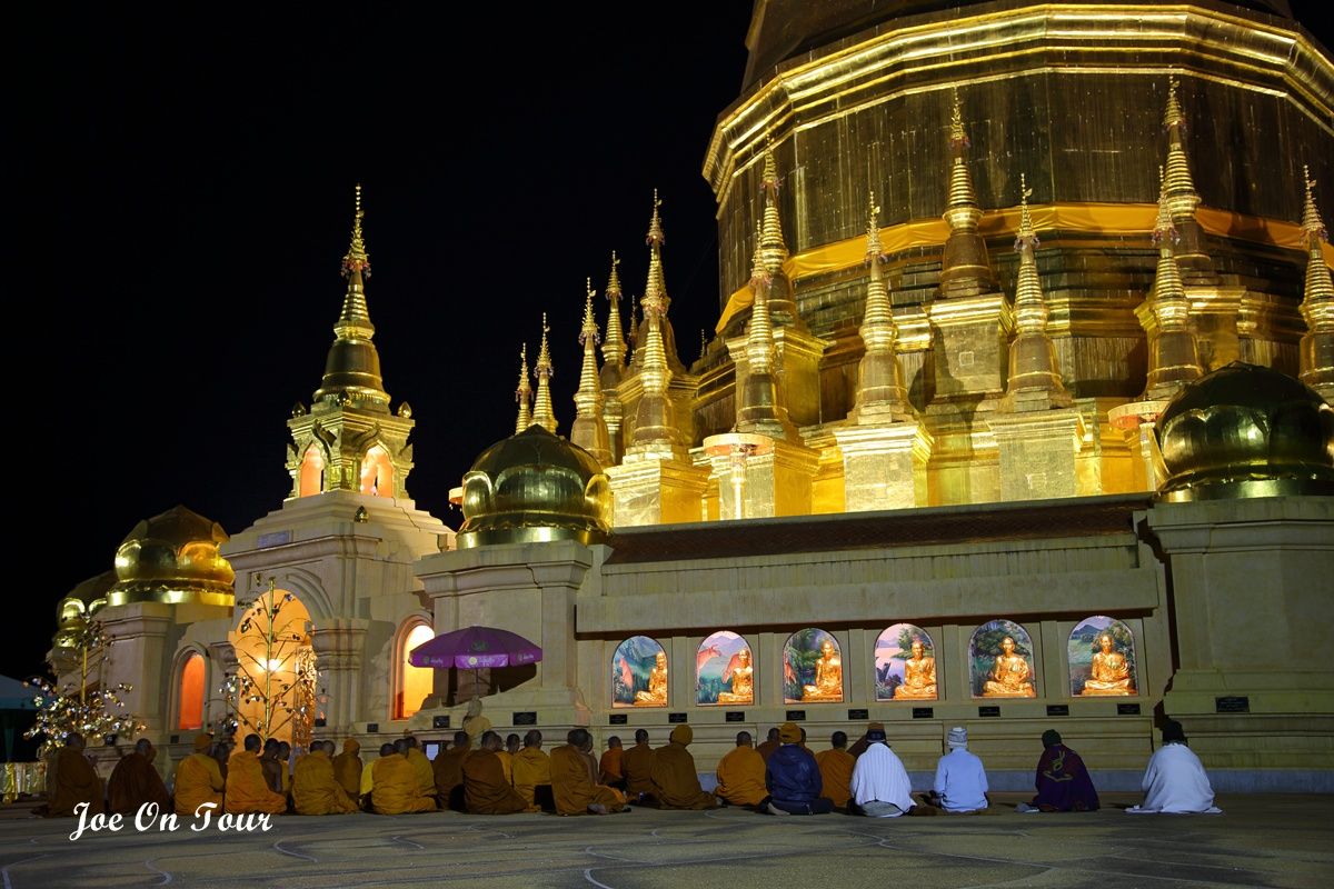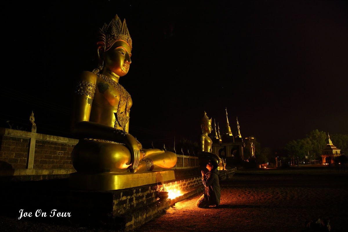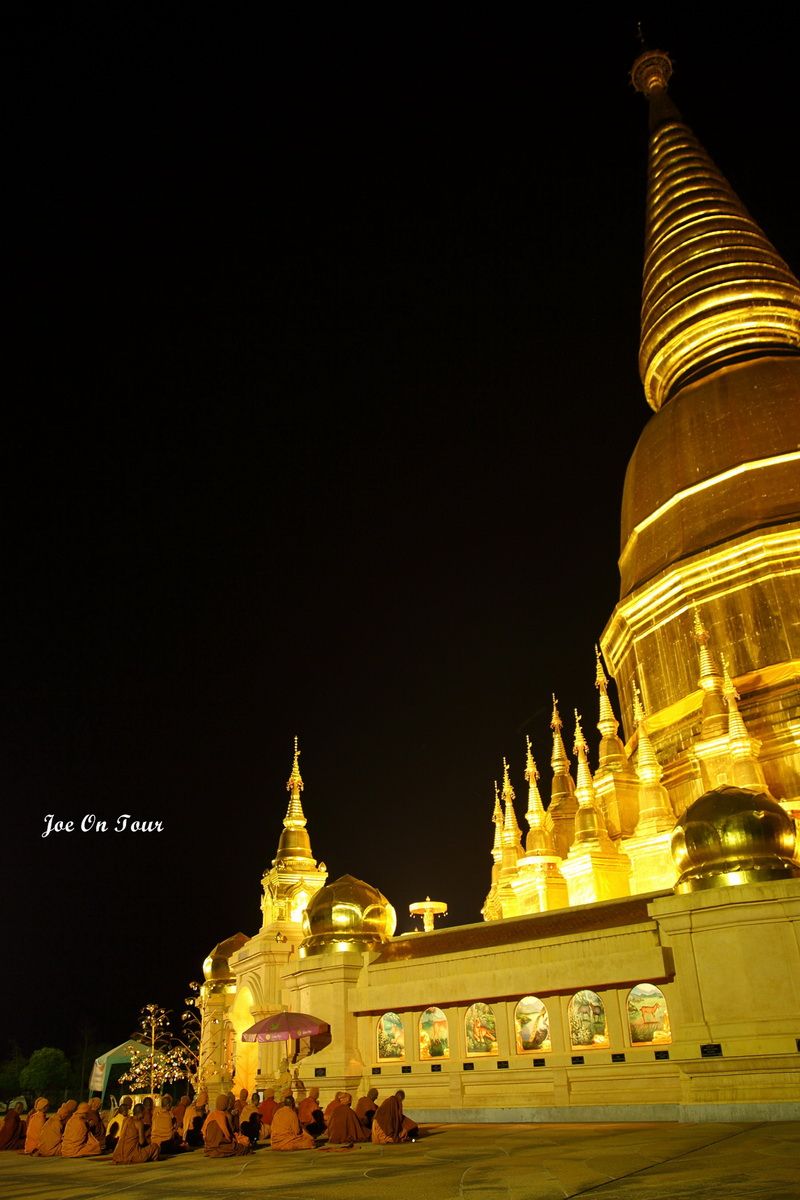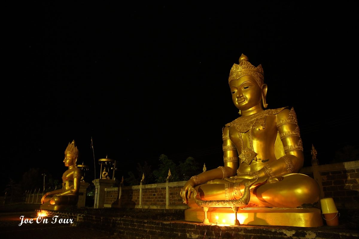 ตอนที่ออกจากที่ทำการ อช.แม่ปิง ไม่ได้คิดที่จะแวะที่ไหนแล้วครับ แต่ระหว่างทางได้เห็นพระมหาธาตุเจดีย์ สีทองอร่ามสวยเด่นอยู่ในความมืดจึงได้แวะเข้ามานมัสการ และตอนกลับก็ได้เกิดเรื่องแปลกๆขึ้นพอพ้นประตูวัดออกไปจีพีเอสที่ได้ตั้งพิกัดไว้แล้วก็เกิดอาการเพี้ยนเอาดื้อพาหลงหาทางออกจากหมู่บ้านไม่ได้ซะงั้น อดีนาลีนพุ่งปรี๊ด